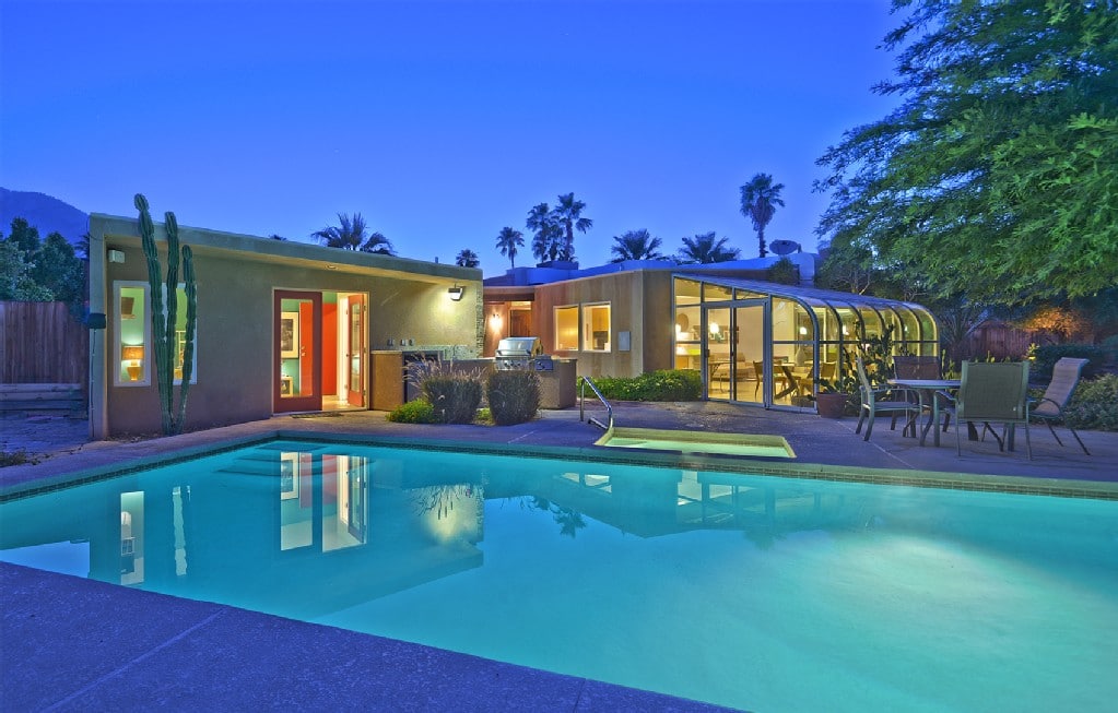 JACQUES is a an authentic ‘Alexander home’ in Racquet Club Estates that has had a few wonderful additions to the main house, as well as the addition of a separate casita. The entire 4 bedroom 3 bathroom property, behind walls and locked gates, is essentially your own private resort.