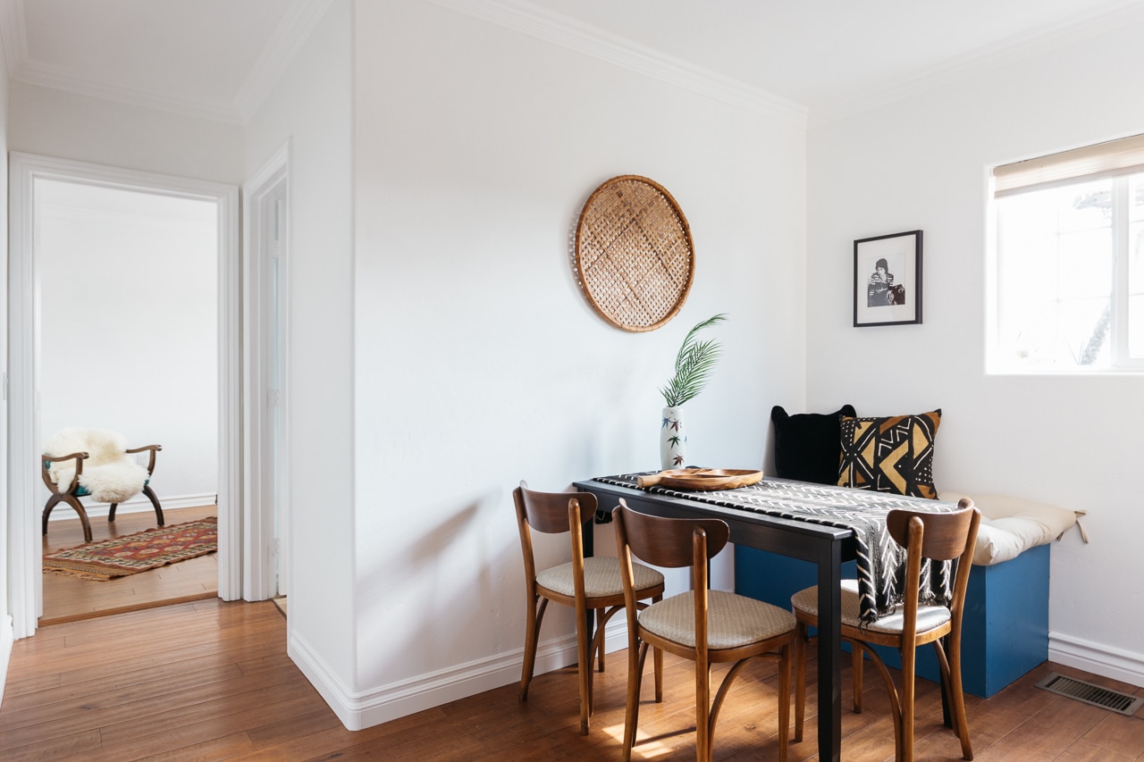 A dining nook off of the kitchen offers the perfect space for a romantic dinner for two!