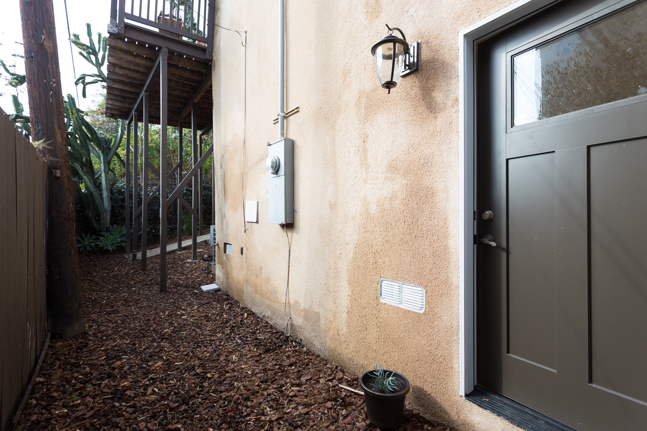 Lower level studio boasts high ceilings and new floors, and is accessed by gated side stairs to lower level (a dog run, perhaps!?).