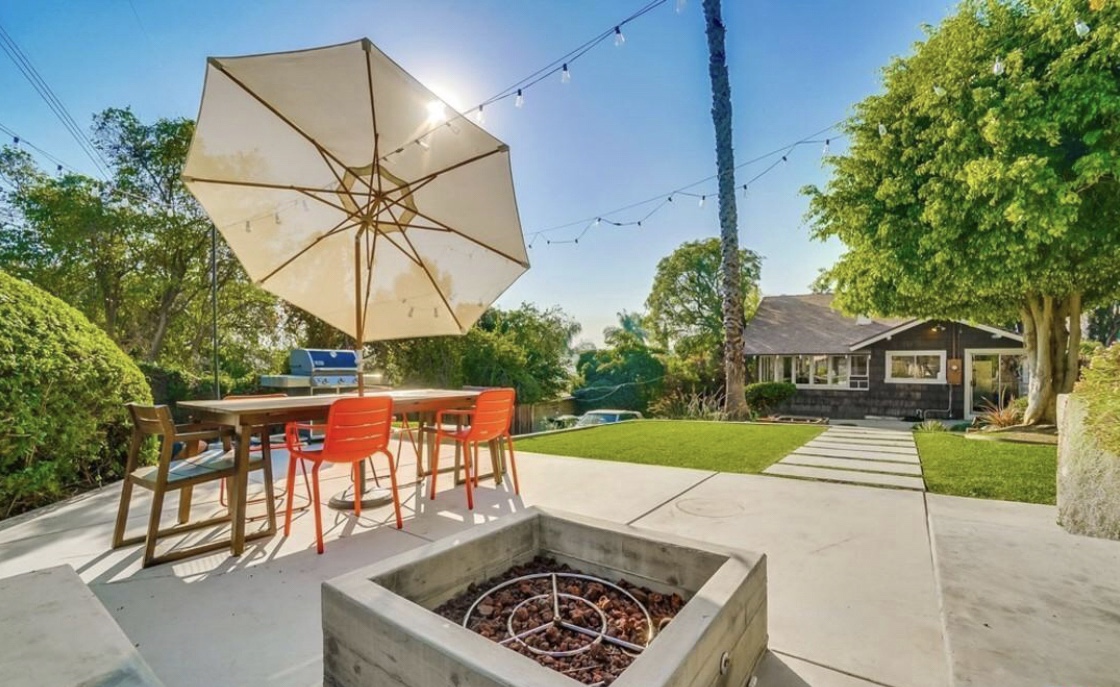 Take the entertainment outdoors to this spacious backyard with fresh landscaping and firepit, the perfect outdoor oasis.