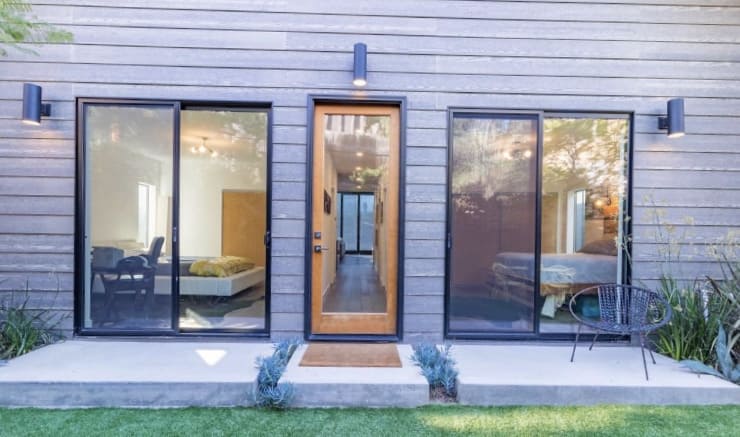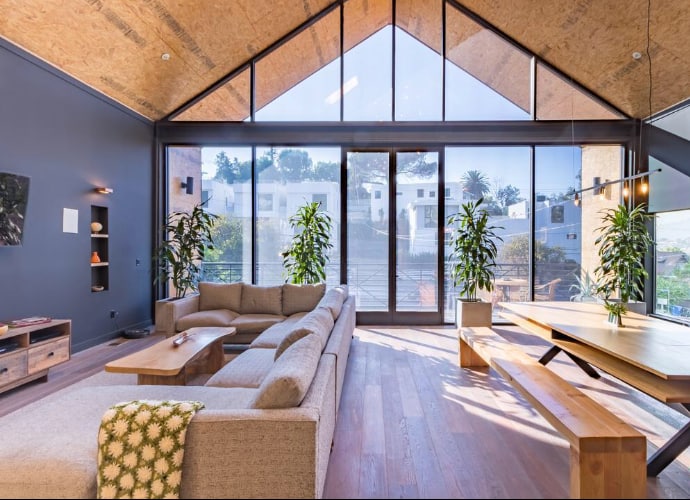 Built-in 2016 this iconic Farm House features a sea of glass windows, vaulted ceilings, hardwood floors, a patio just off the living-dining room area, recess lighting, cat6 wired smart home, built in speakers, metal roof and siding, and tankless water heater. It is in the perfect location, walking distance to Whole Foods, The Silver Lake Reservoir, and dog park.