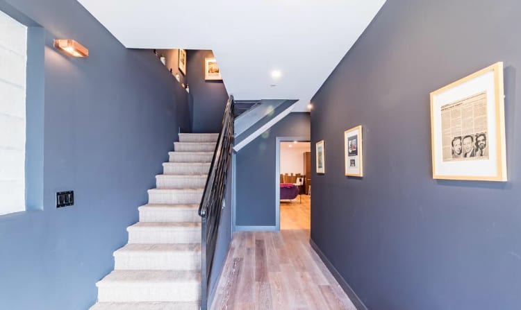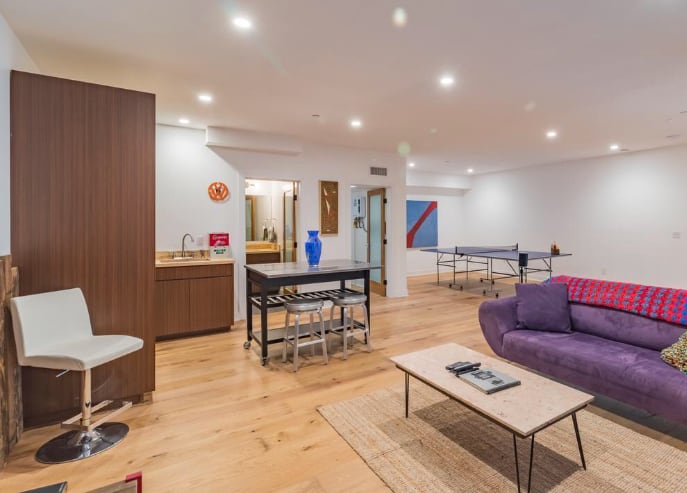 Head downstairs to the first floor and discover the enormous guest suite and media/game room.