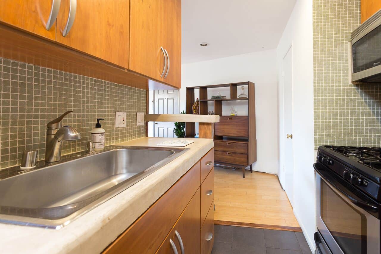 Extraordinary 1BR condo in Mediterranean complex offers wide open living and dining with hardwood floors throughout, renovated kitchen with stone countertops and tile backsplash, updated stainless steel appliances, and new bath.