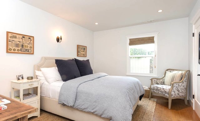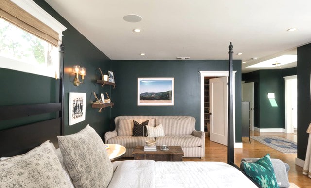 One of the 4 bedrooms is currently designed and used as a den — perfect cozy spot for some tv time or snuggling up with a good book.