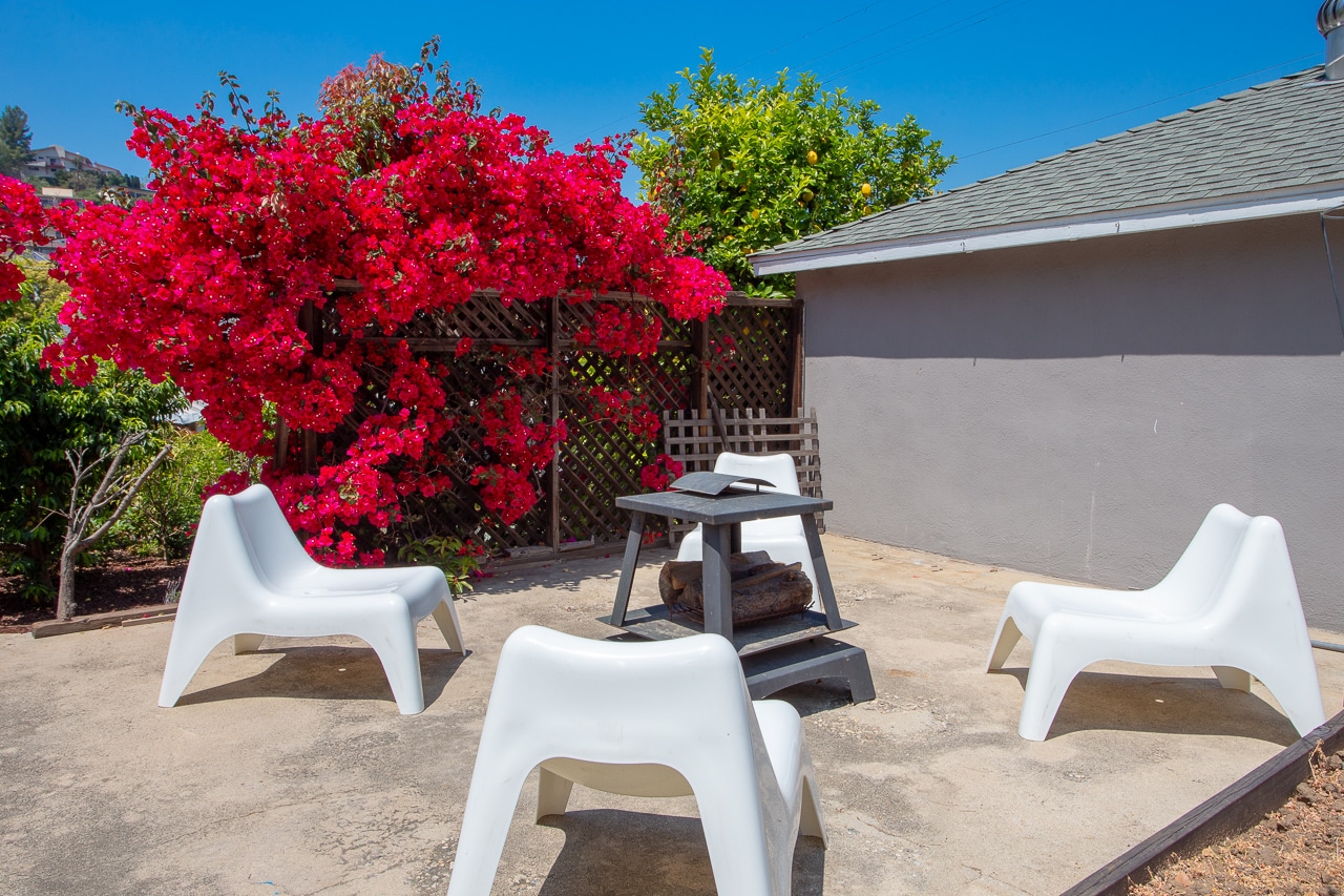 Upgraded home boasts fresh interior paint, new landscaping and drip irrigation, fruit trees, natural gas outdoor fireplace, new low-e dual pane windows, renovated bath, updated kitchen with stainless appliances, updated plumbing, and electrical subpanel, ductless a/c in living room and master, water filtration and softening system, and more!