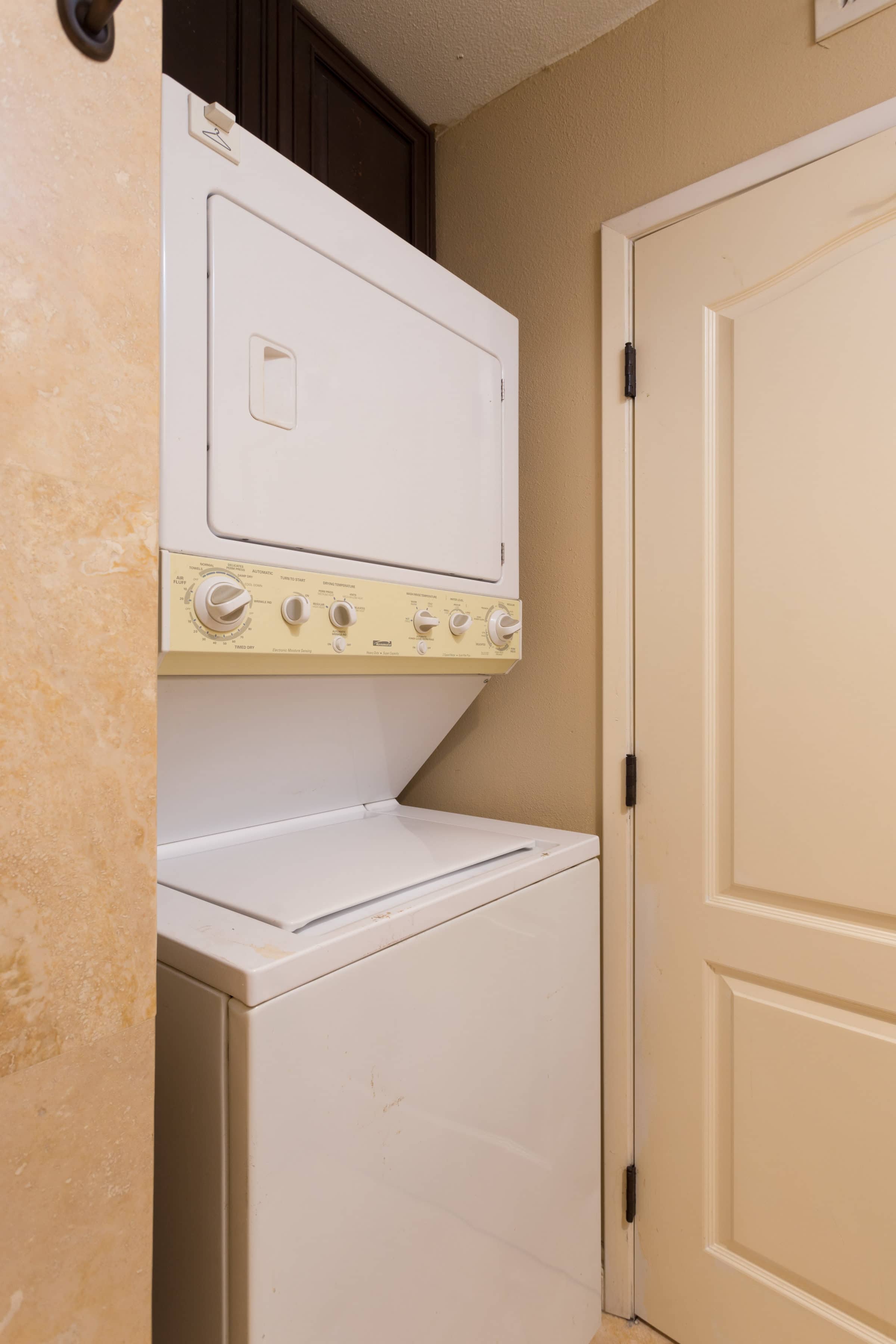 The full bathroom features a deep soaking tub, a new vanity with dual mirrors + plenty of counter space! It also has a stackable w/d closet, perfect for those too busy for trips to the laundromat!