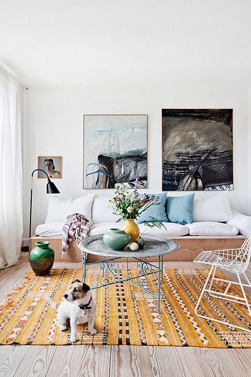 Let the finishes of your existing furniture guide you, and aim for contrast. With seating in a soft fabric like velvet, something smooth and hard like a sisal might be the answer, while a sleek leather sofa looks great on something with a longer, fluffier pile.