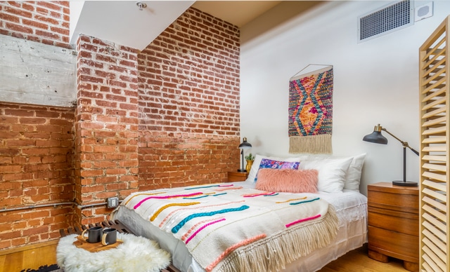 This spacious loft is just oozing with beautiful natural light thanks to what is essentially a wall of windows overlooking Spring Street: stunning loft-style windows that can be opened from the top half.
