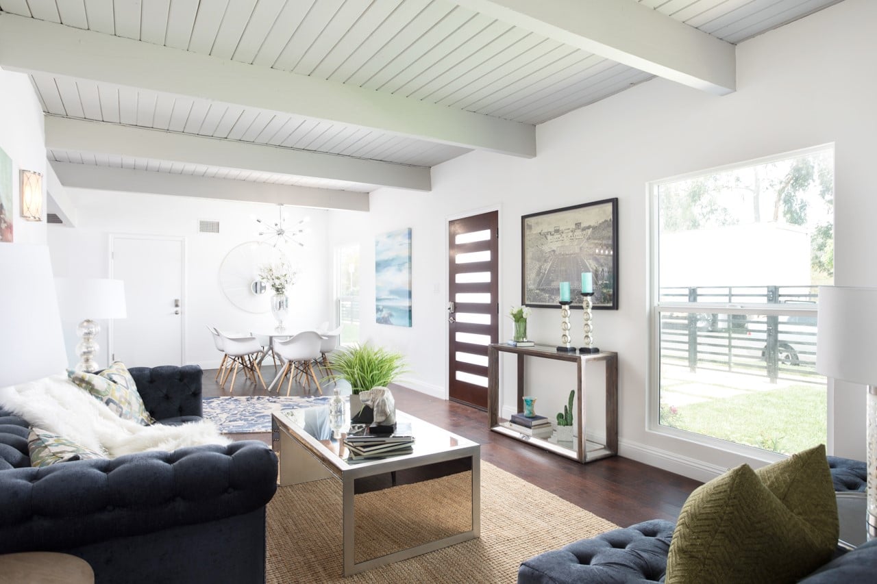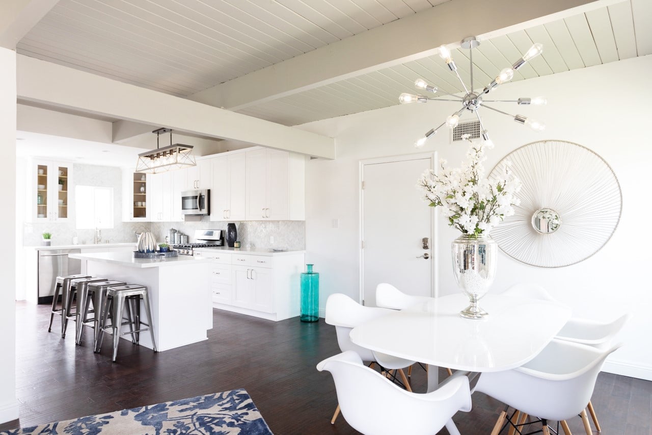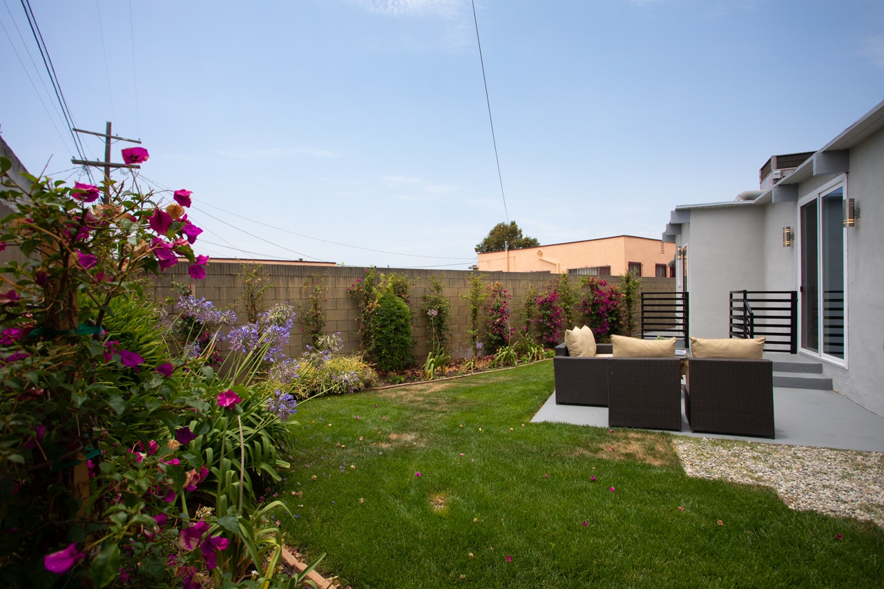 Picture Perfect Mid-Century with a touch of Hollywood Glam on Oversized Lot in West Adams! Step through a custom mahogany front door to 3BR/2BA of wide open kitchen, living and dining, featuring new wood floors, designer lighting and detail, and tongue and groove wood ceilings and beams throughout!