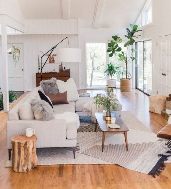 This tip really depends on the size of your room. If you have a large vaulted ceiling living room you definitely do not want to fill it with a dinky sized sofa and chairs. On the flip-side, if you are living in a studio apartment a hefty sectional won’t be doing you any favors. A good rule of thumb for smaller spaces is looking into an “apartment” sized sofa or loveseat paired with an accent chair or two. Chairs or small benches can easily be moved around and have more flexibility in a tight space. Rug sizing is also important in creating a harmonious living room. Too small and the rug ends up floating unanchored in the room, but too large and it looks like it has taken over the space! My best advice for choosing the proper rug size is to have at least the front legs of your main furniture pieces sitting on the rug. That way everything gets pulled together and you don’t have anything drifting out on its own.