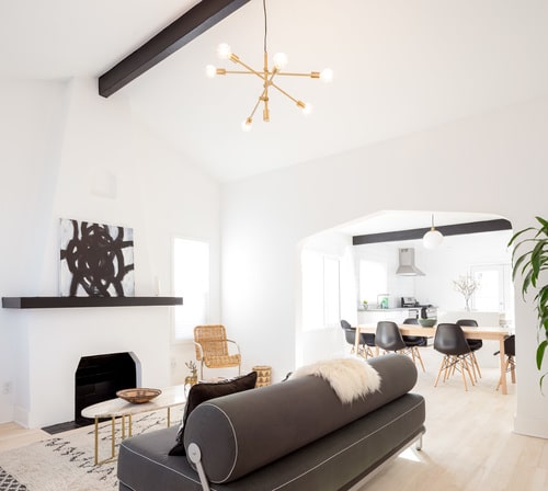 Or go for the drama and intrigue of a chandelier, which bring in so many elements: the shape of the lightbulbs, the tone of the light that shines, and the reigning frame that can be a feature piece, ornate and grand among neutral décor.