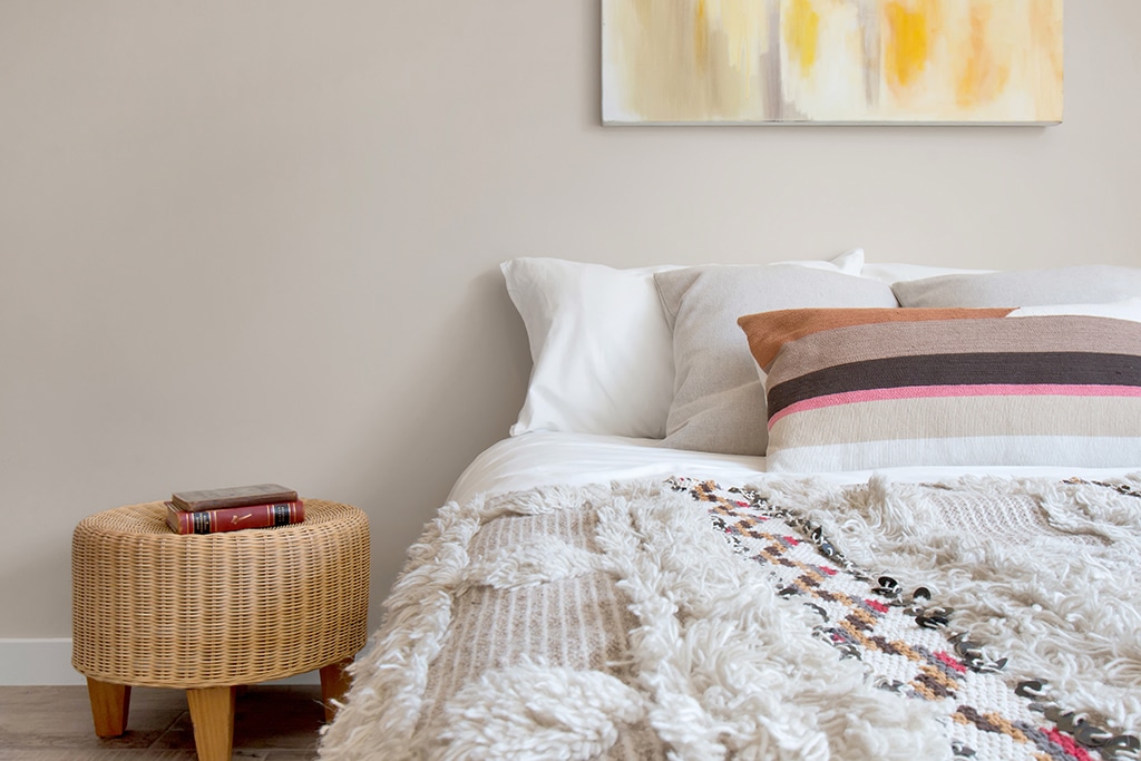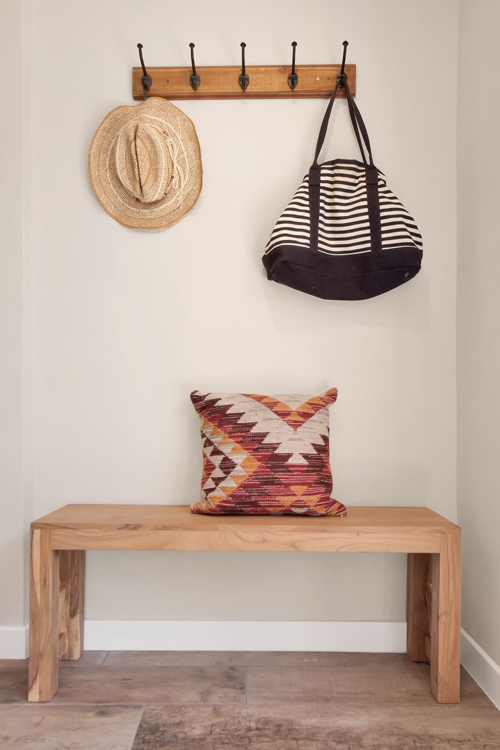 New master suite addition offers hex tile bath ensuite, large closet and hidden storage nook.