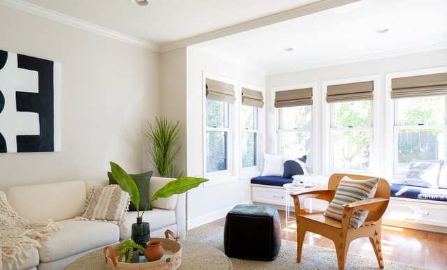 Across the kitchen you have a cozy den space with views of the backyard. Love the windows by the built-in bench.