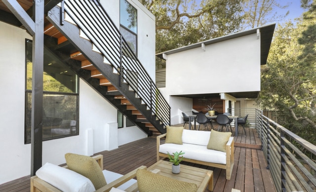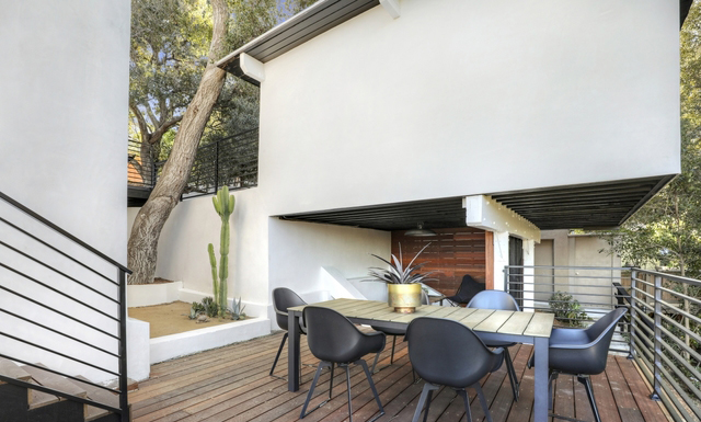 Outside, the large Mangaris wood deck is an entertainer’s dream, boasting three separate areas perfect for lounging or dining al fresco. Home has a separate 2-car garage and a driveway with parking for an additional 2 cars. Enjoy the serenity and privacy of the hills while still being minutes from the best of Sunset Boulevard. Canyon living is a beautiful thing!