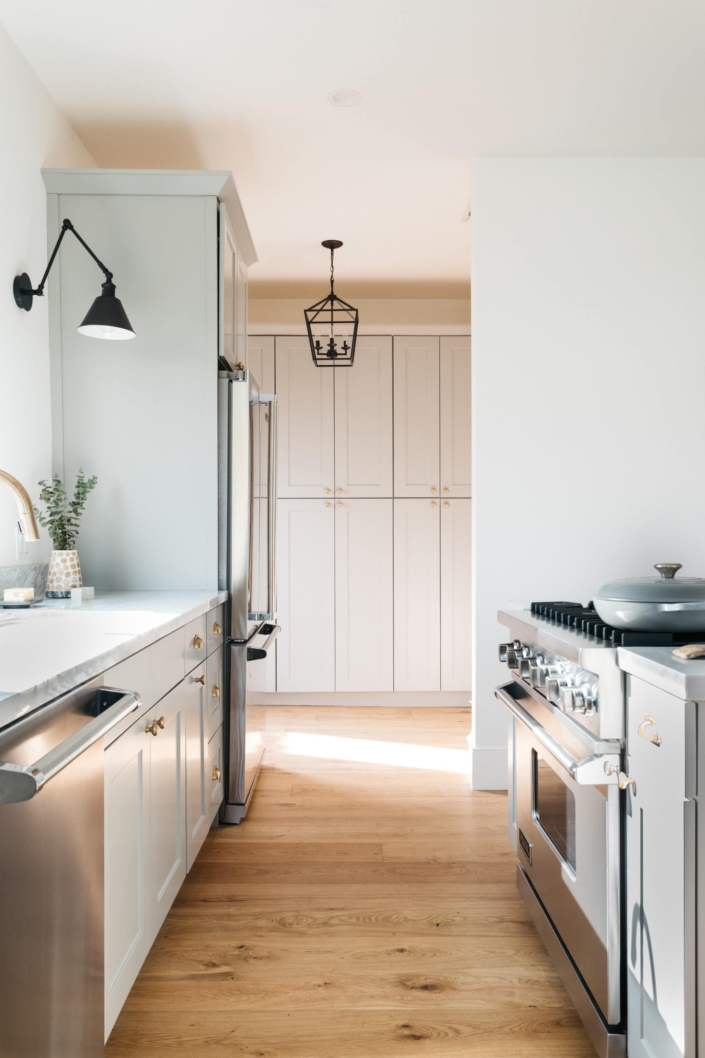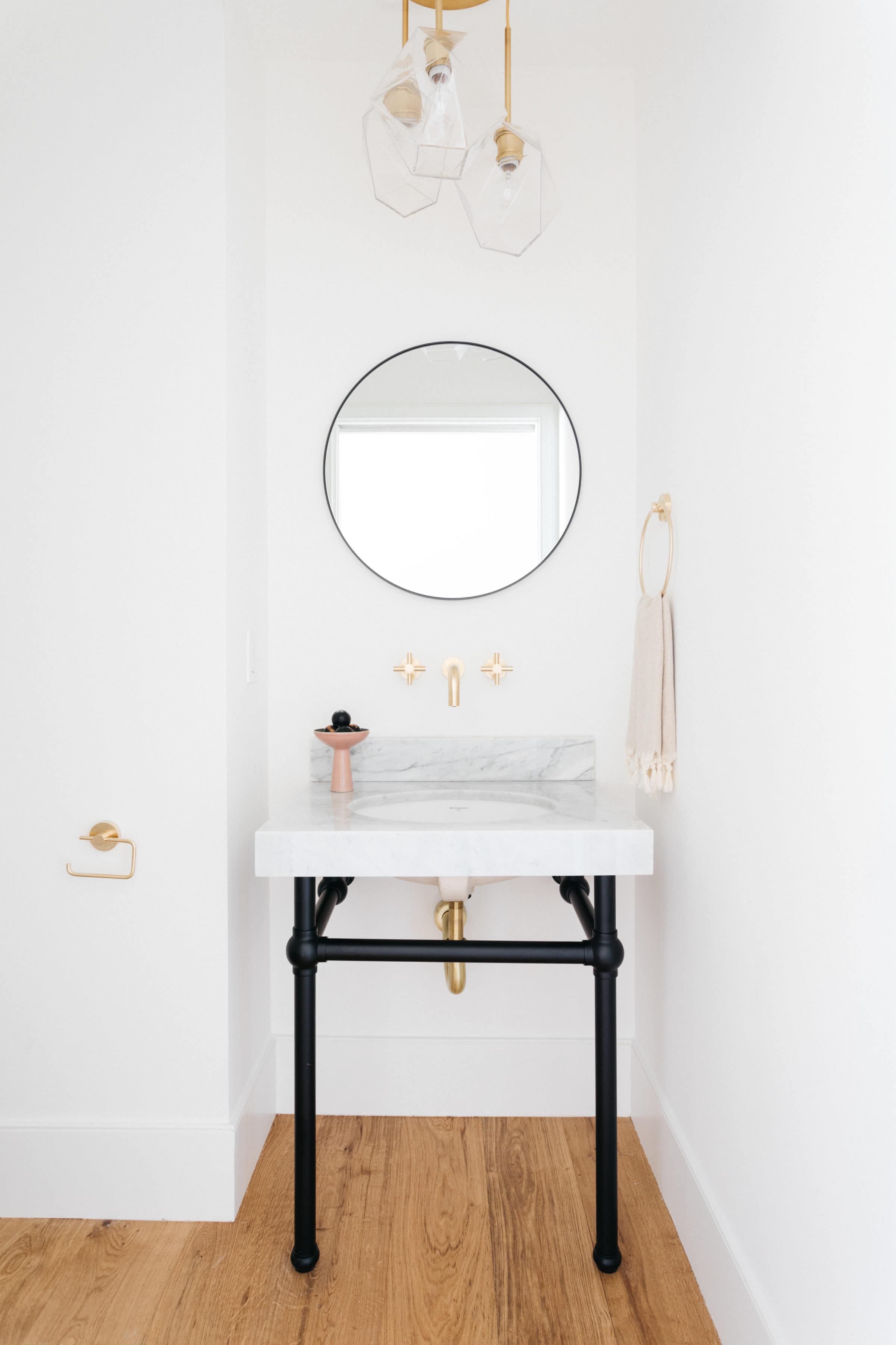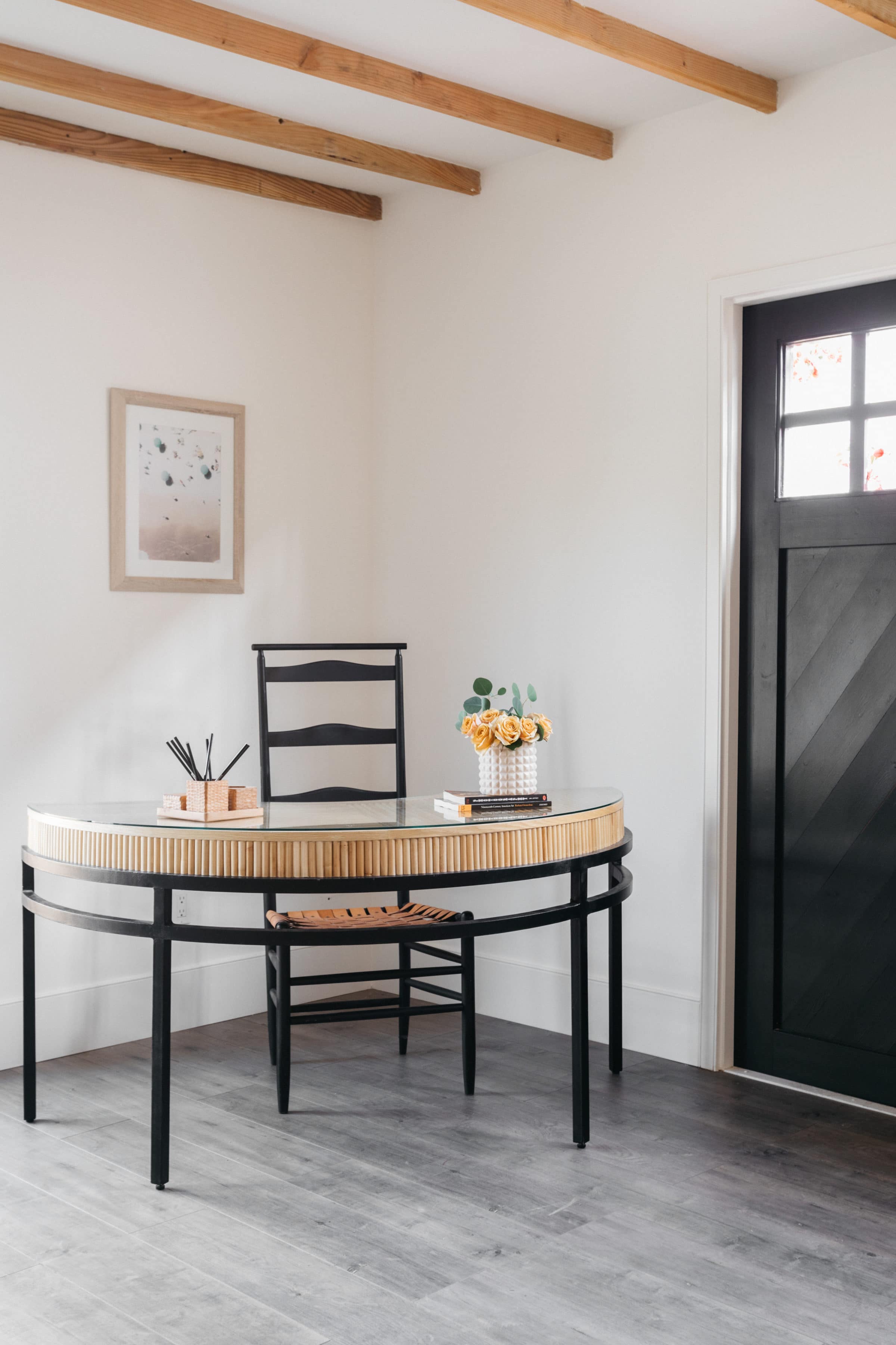 Three spacious + private bedrooms, two full baths and a powder for guests complete the interior.