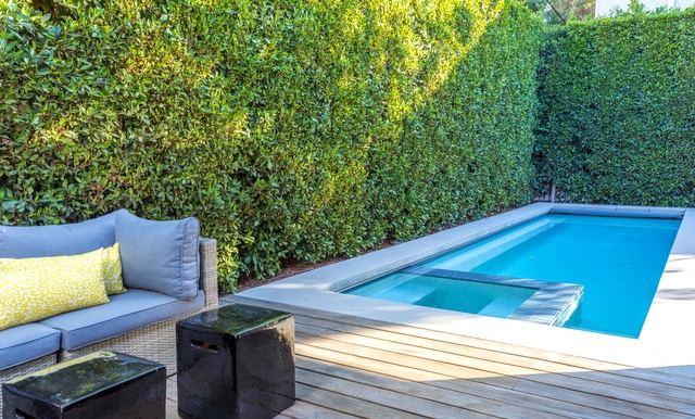 Sliding doors open out to a gorgeous yard.