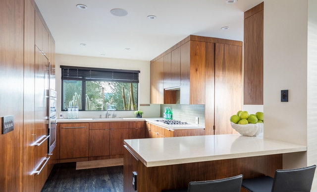 Kitchen is a wonderfully warm and homey space; featuring gourmet appliances, walnut cabinetry and a lovely breakfast bar area.