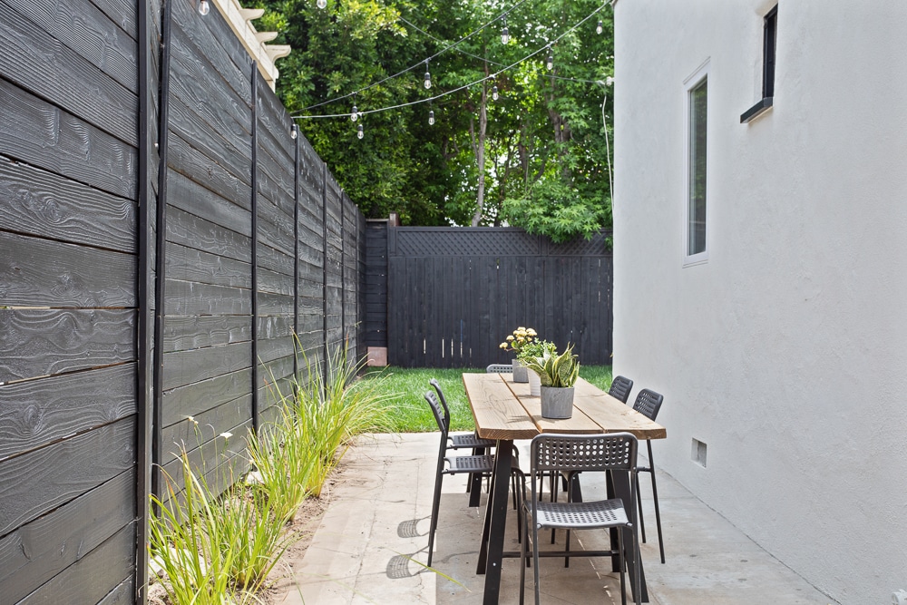 Yard includes newly planted sod, new fence and custom-built gate. Patio lights provide the perfect area for al fresco dining and the French doors give a serene indoor/outdoor feel.