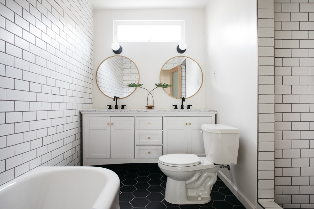 Main bath features imported Spanish tile, double sink vanity with Carrera marble top as well as designer knob pulls and light fixtures.
