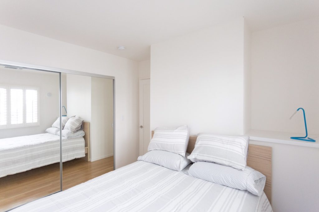 One of five design savvy bungalow apartments originally built next to Paramount Studios in Hollywood’s heyday of 1924. Newly imagined by architecture + development firm, OVERARCH, this minimalist and modern two bedroom unit features your very own entrance, with steps leading up to your front door, adorned with lush mature landscaping.