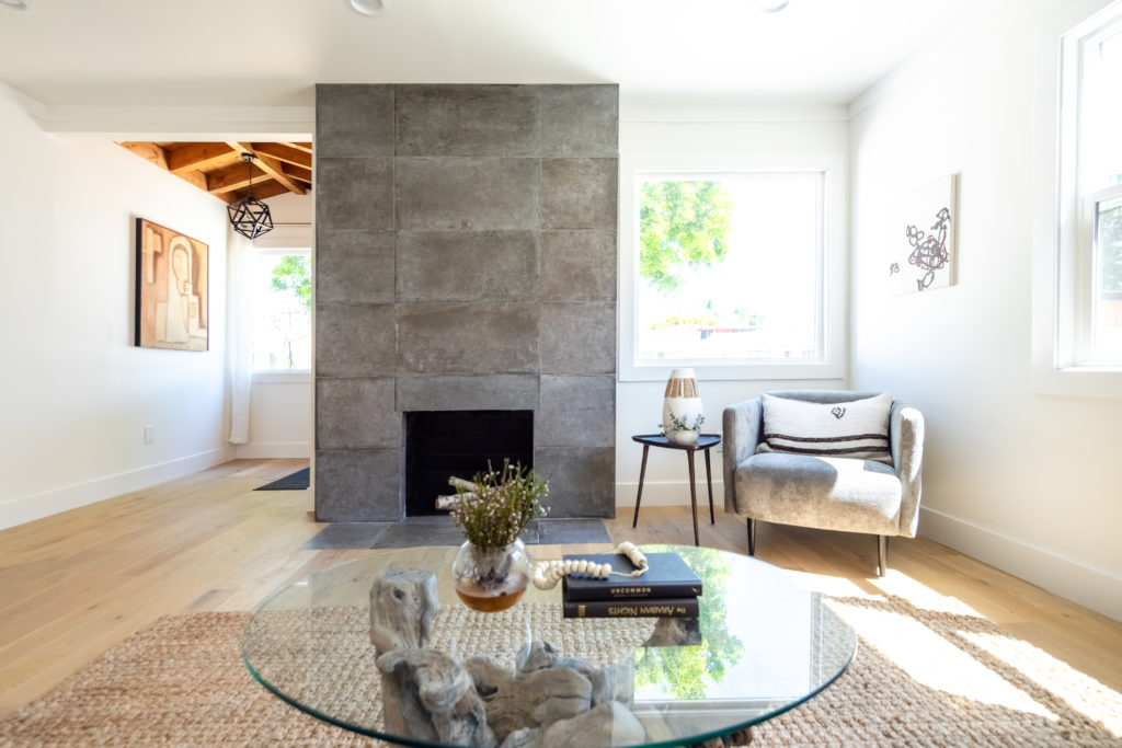 Inside a thoughtful floorplan awaits with a formal living room adorned by a cozy wood-burning fireplace.