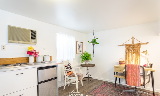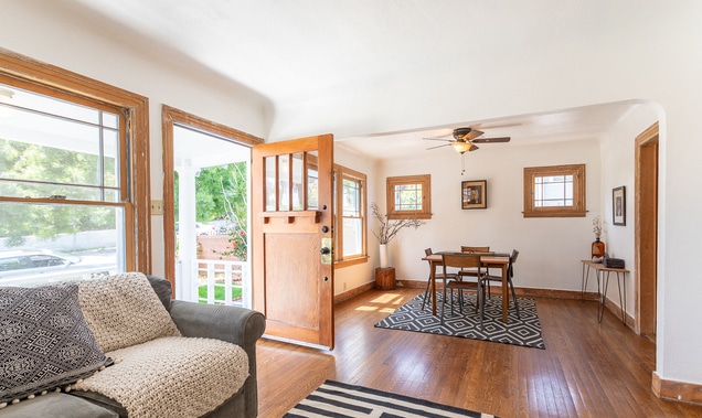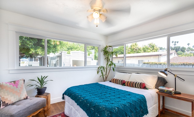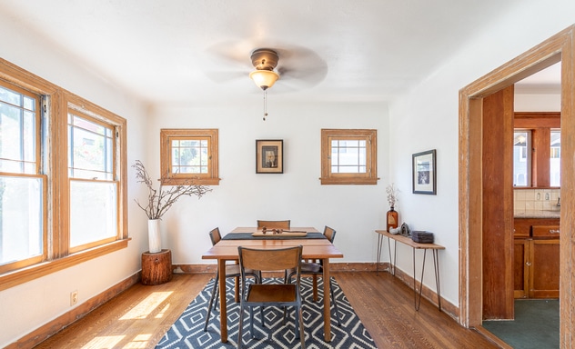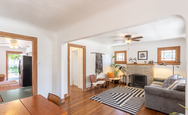 This sweet California Craftsman Bungalow is light and bright and has oodles of vintage charm, with an actual working fireplace for those rare cold winter evenings and stay chill in the blazing LA heat with ice-cold HVAC.