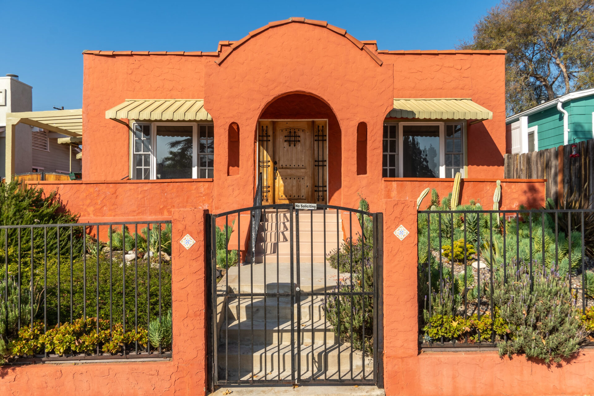Front house features 3 bedrooms and 1 bath, with gleaming hardwood floors, decorative fireplace, built-in bookshelves, fresh paint, laundry room, entertaining terrace and beautiful front porch and yard with native landscaping.