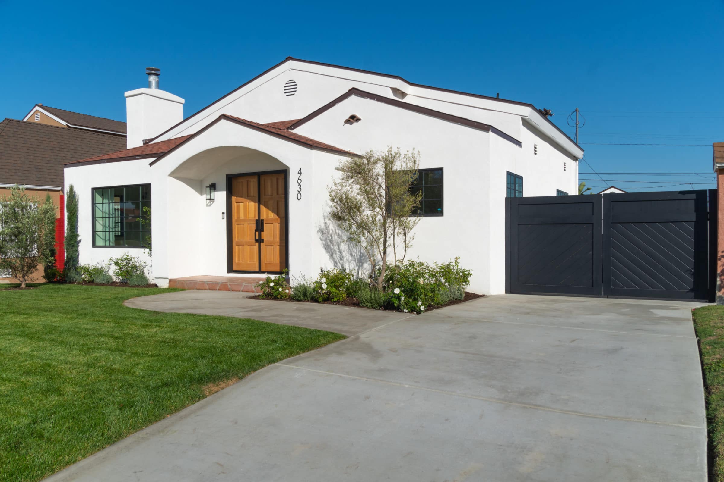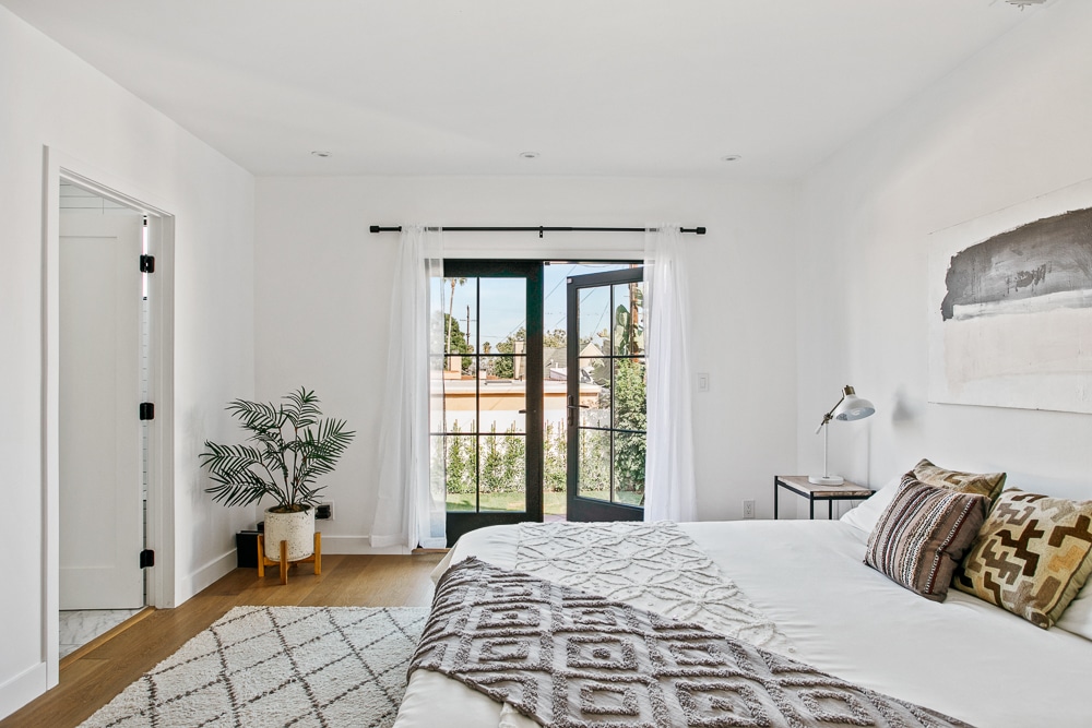 Leave the french doors ajar and enjoy the breeze + palm tree views. The impressive backyard will mature to an oasis, bordered by walls of ficus and strewn with fresh new sod.