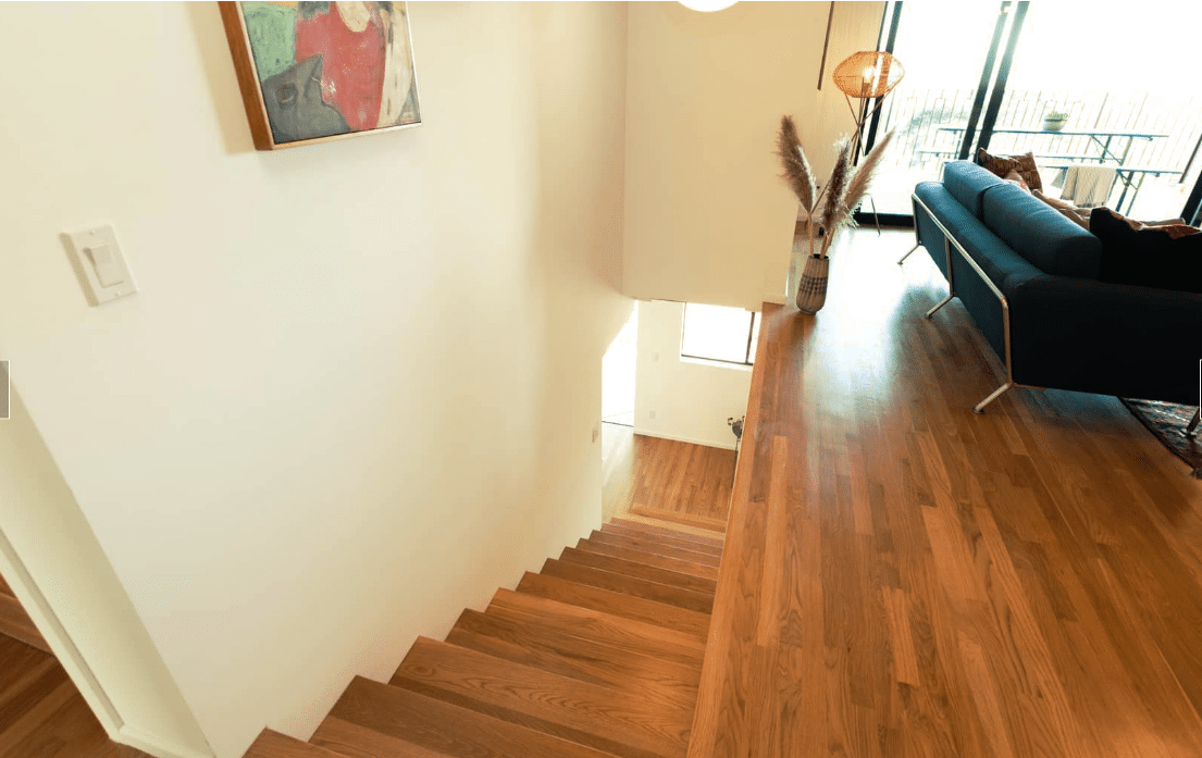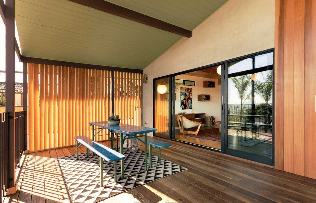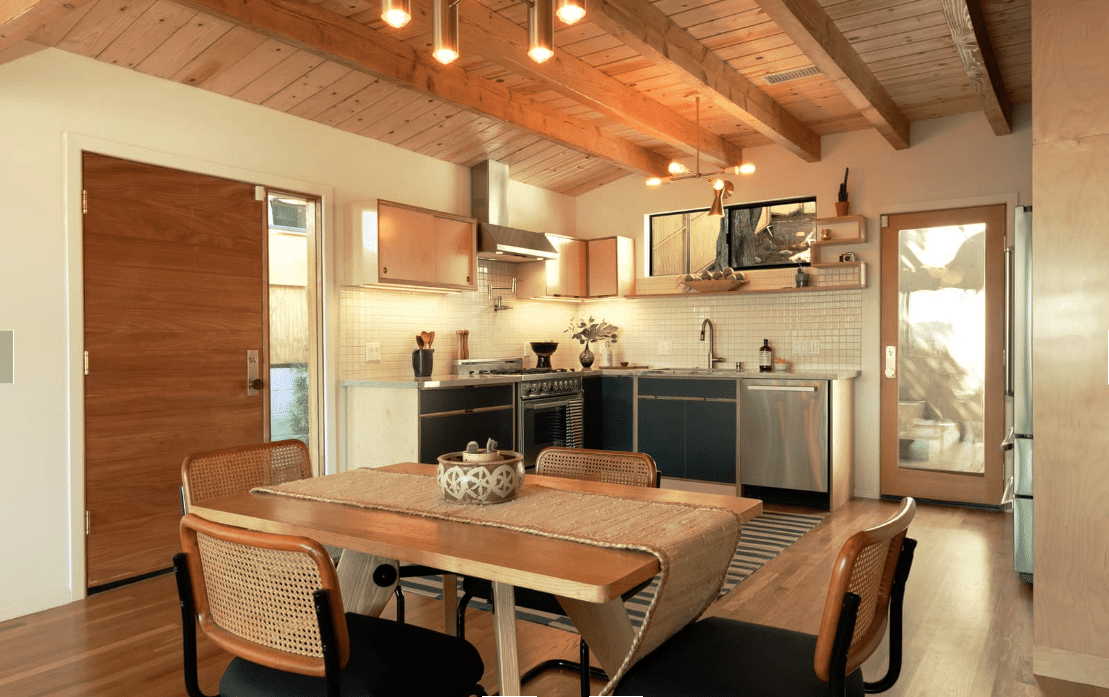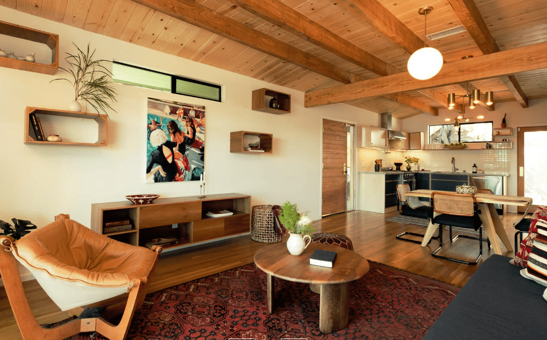 Warm woods floors and ceilings make you feel homey while records play on the turntable.