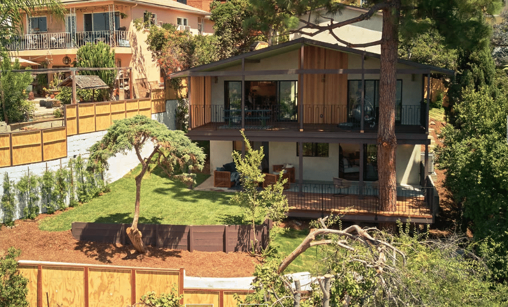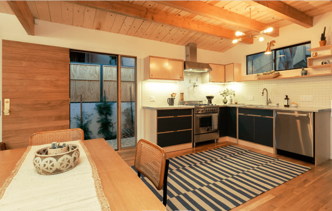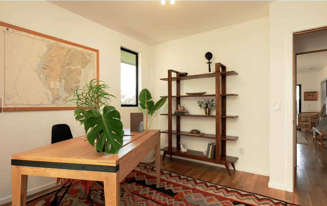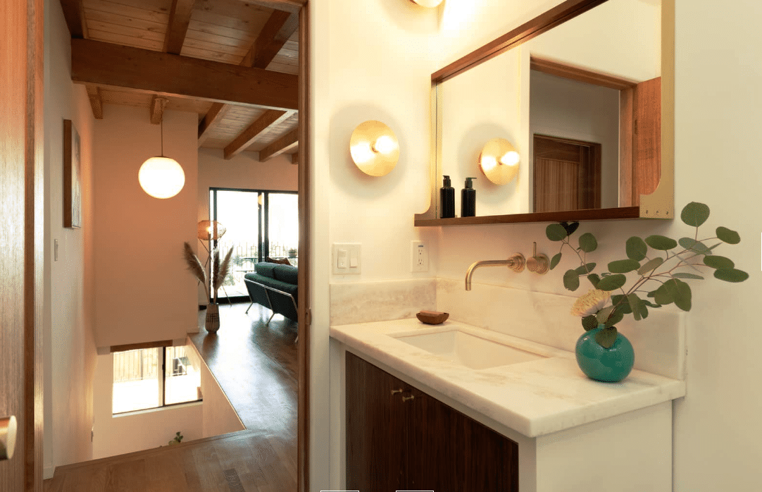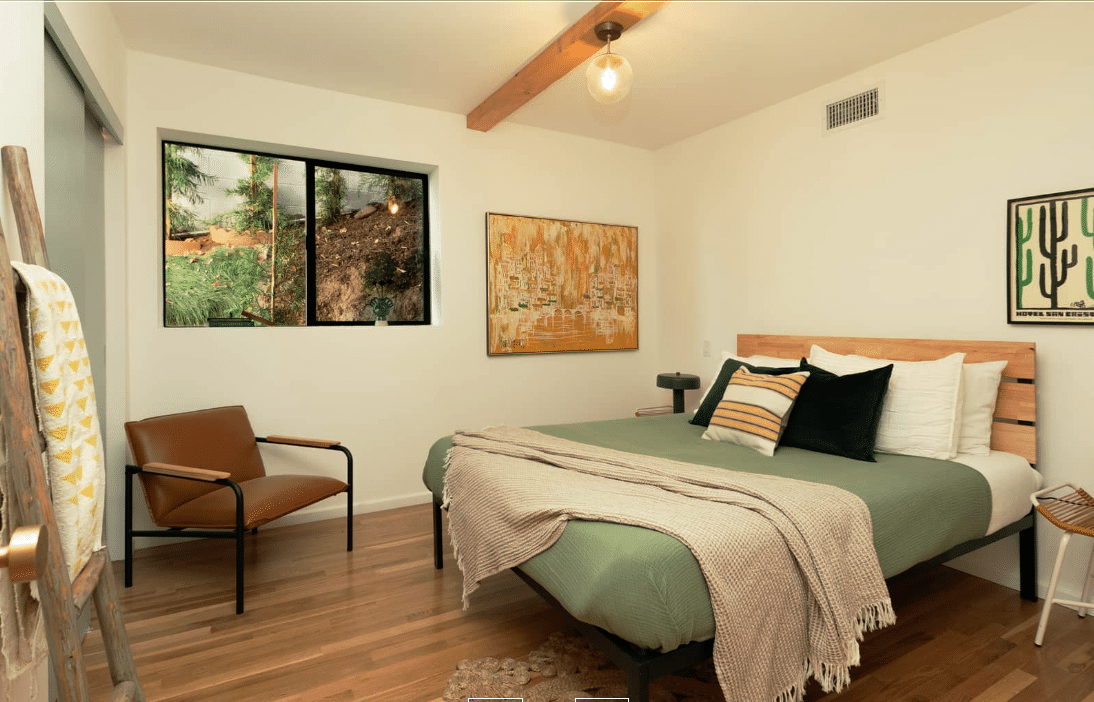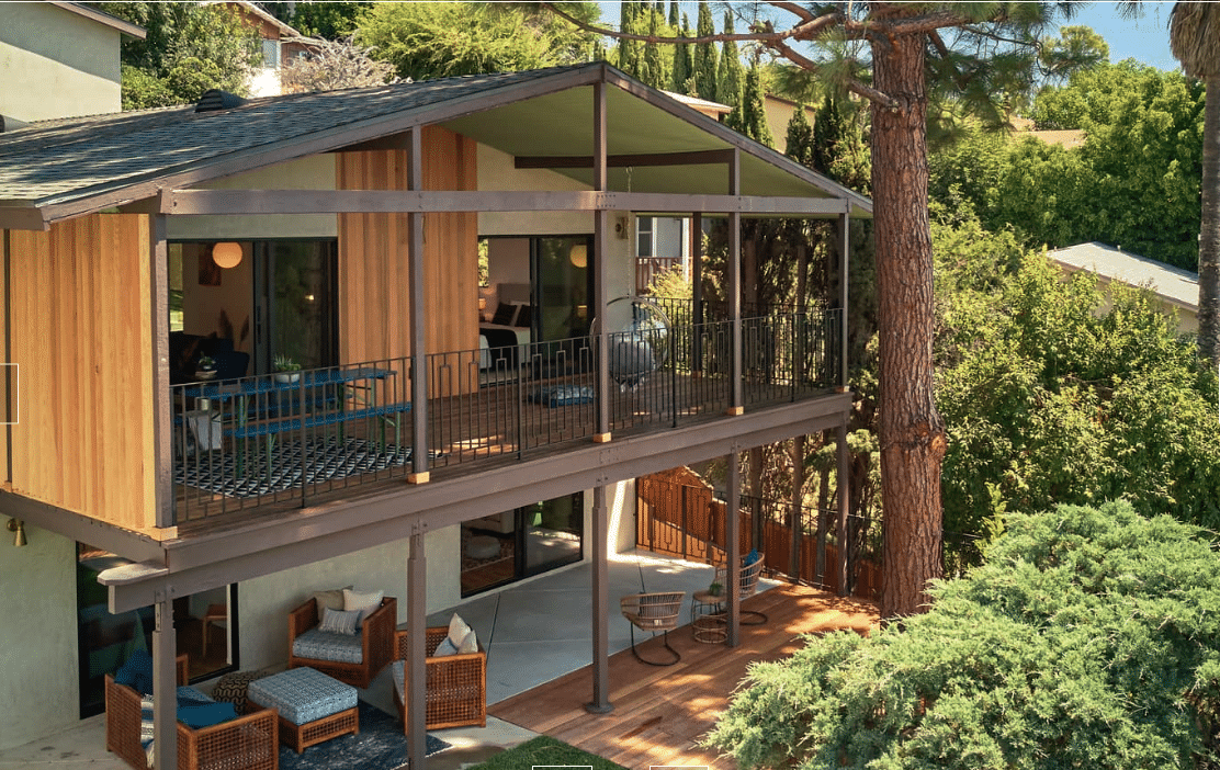 This Residence was tastefully designed and curated – it showcases simplicity, clean lines, connection to nature, & bold colors. The open spaces in the living room, dining room, kitchen and covered deck is perfect for indoor/outdoor entertainment. The master suite is filled with natural light & views, opens out to covered deck, & an en suite bathroom. This 2 story home features an amazing floor plan, seamless converts to all the outdoor living areas; floating deck, balcony, patio, courtyard, manicured lawns & organic planters. Exquisite Add’l Features: Open beamed ceilings, solid wood flooring, hand-crafted cabinetry, SS appliances, upscale lighting, wood siding, brass hardware, custom closet doors, hand-made tiles, terrazzo, and cozy warm wood finishes throughout. 2nd floor offers a spacious & stylish Family Room, 2brms/2bths, and laundry.