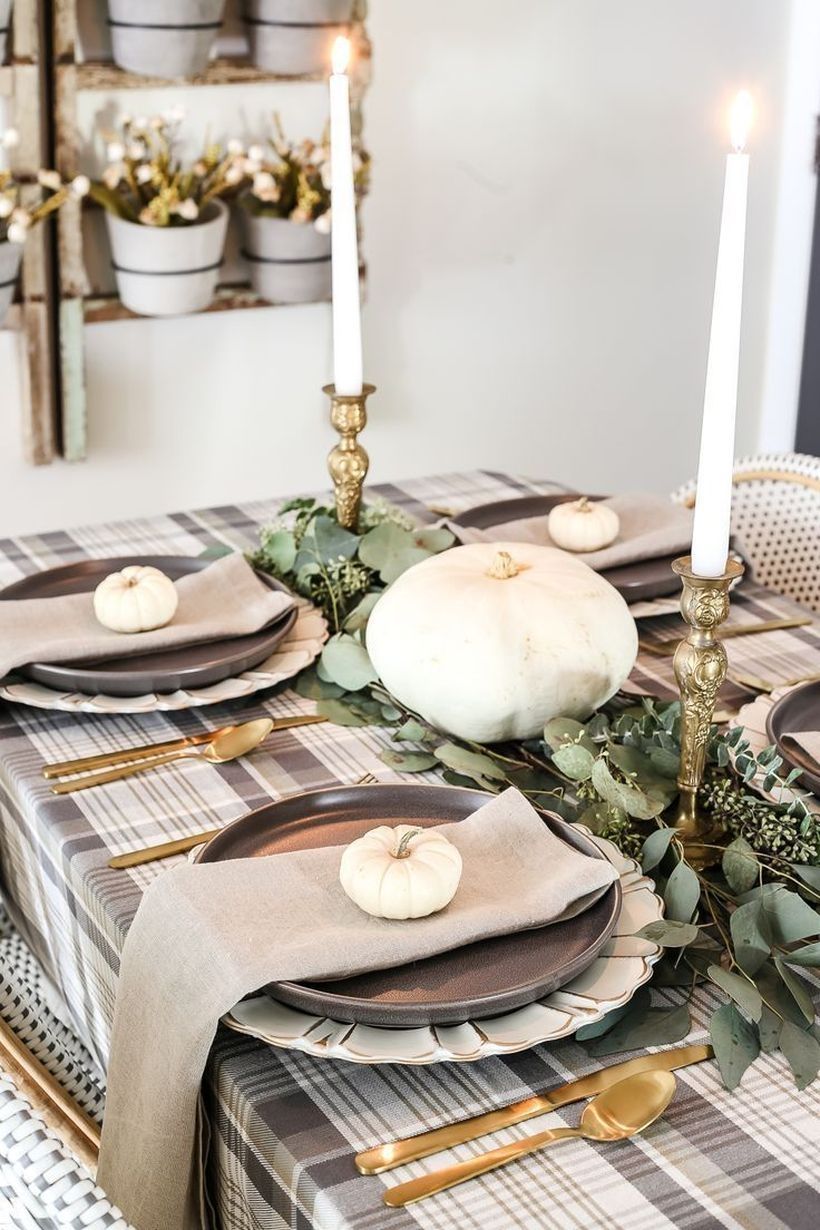 Add pomegranates, pumpkins, and other fall greens for the tablescape.