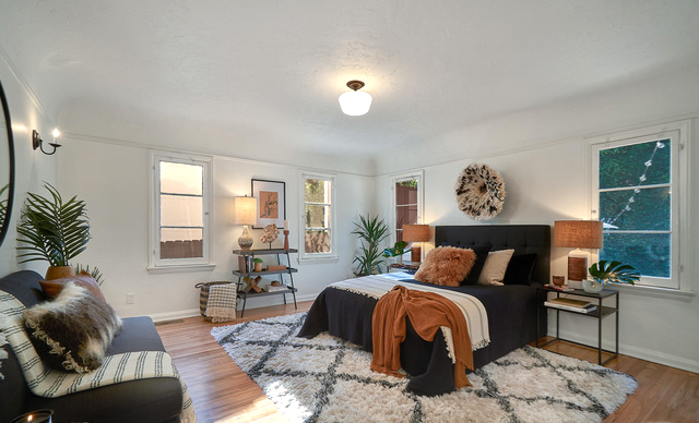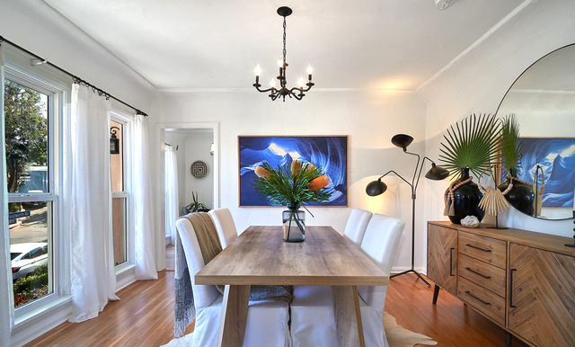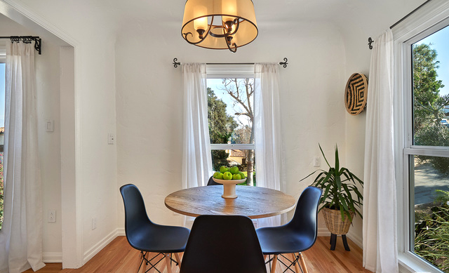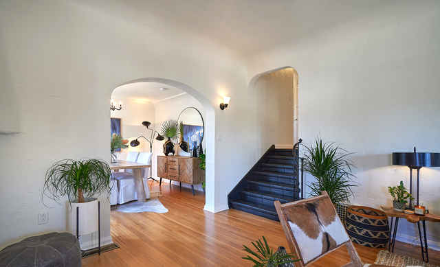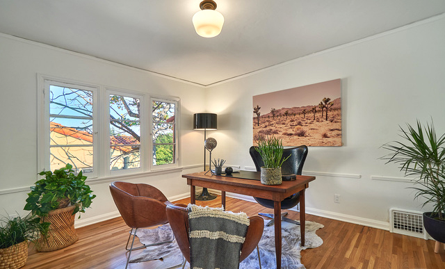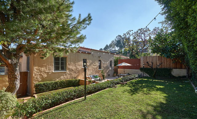 The backyard is a slice of heaven, featuring broad stone patio, grassy yard and mature trees. Dine al fresco, entertain guests, or watch the kids run and play. The outdoor space is perfection! Enjoy living in one of LA’s hippest neighborhoods and mere minutes from delicious hotspots like Botanica, LAMill, L & E Oyster and all the action on Sunset Blvd!