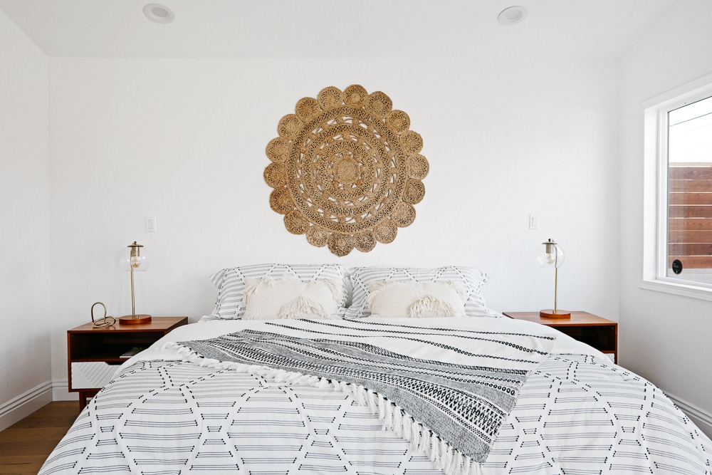 Although a tall bed can be beautiful, in bedrooms where you lack space, it might be best to stick to a bed closer to the ground. That means no high headboards either! Lower beds create an illusion of higher ceiling. In fact, stray from tall furniture in general. Instead of a floor lamp, try a smaller lamp atop your bedside table. Multiple small lamps draw your eyes around the room, exaggerating your sense of space.
