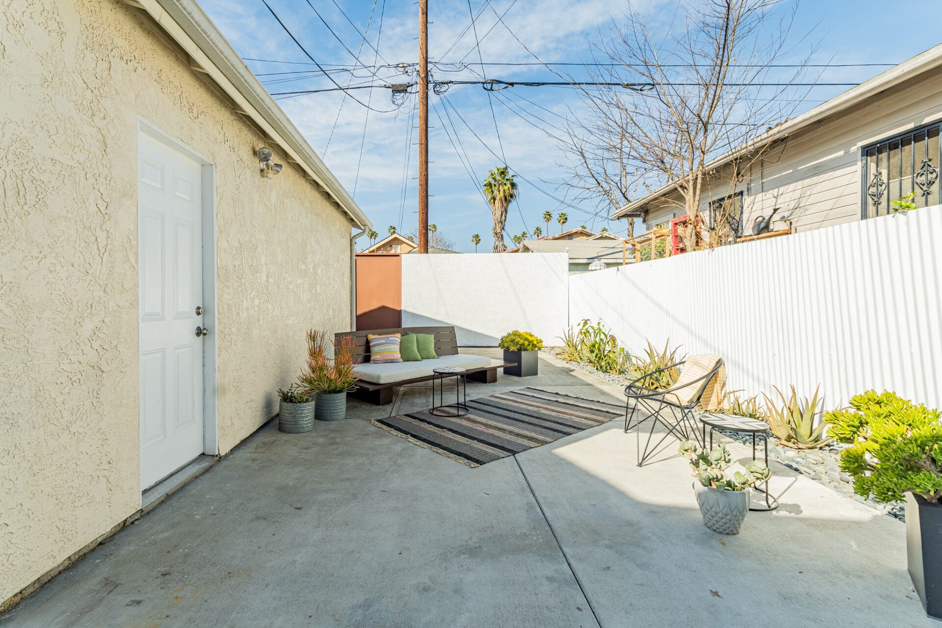 Step out to a serene backyard and bask under the sun while you watch the palm trees sway in the breeze.