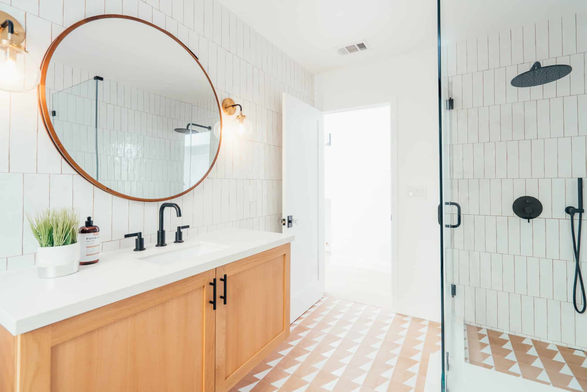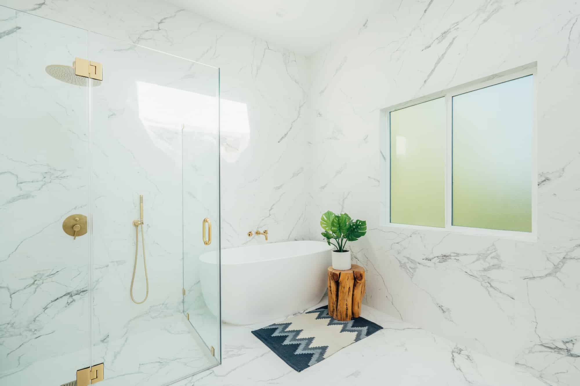 The dual vanity ensures no arguments over counter space. Long day? Grab your lover and take a soak, this oversized tub is fit for two!