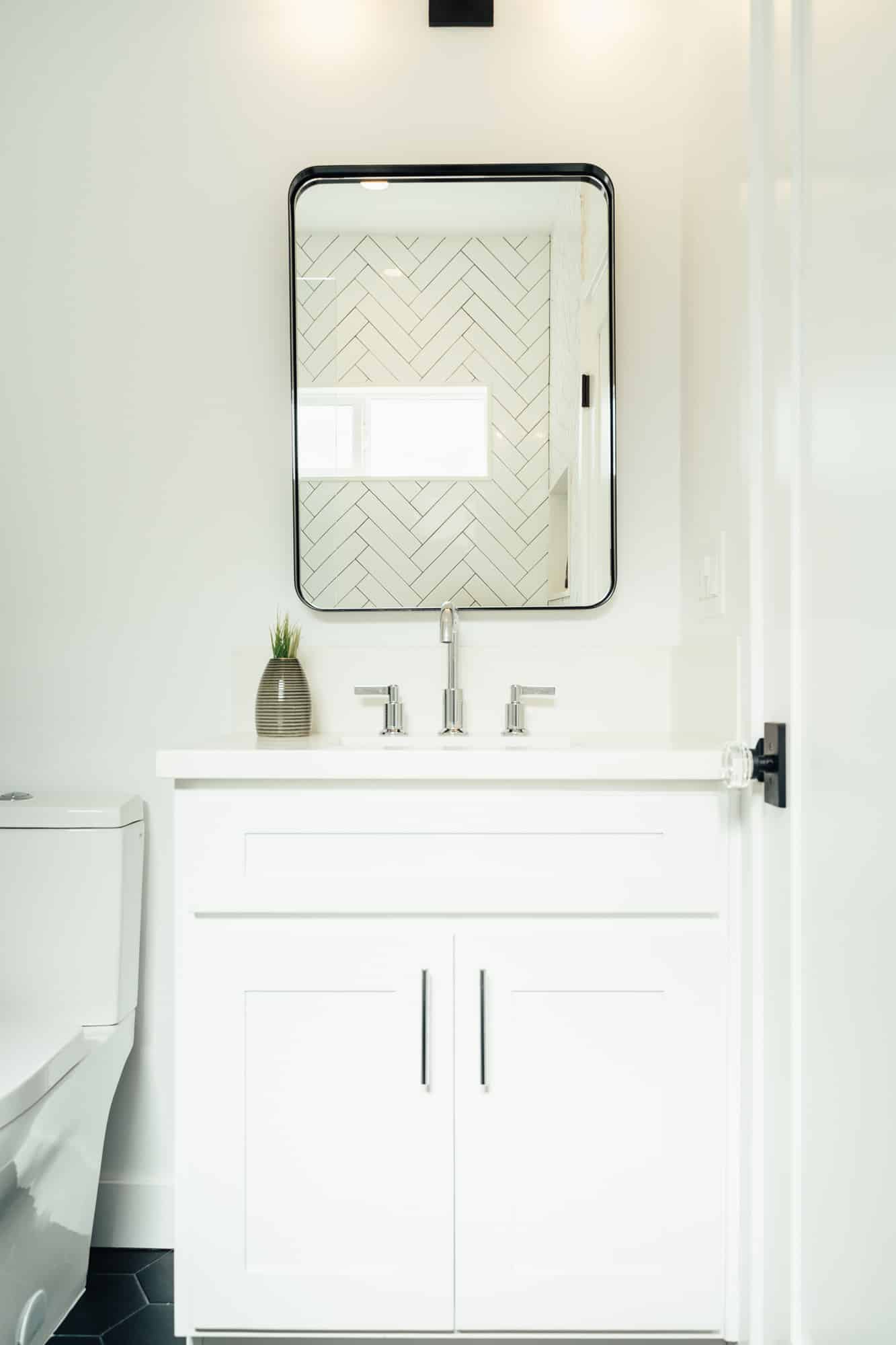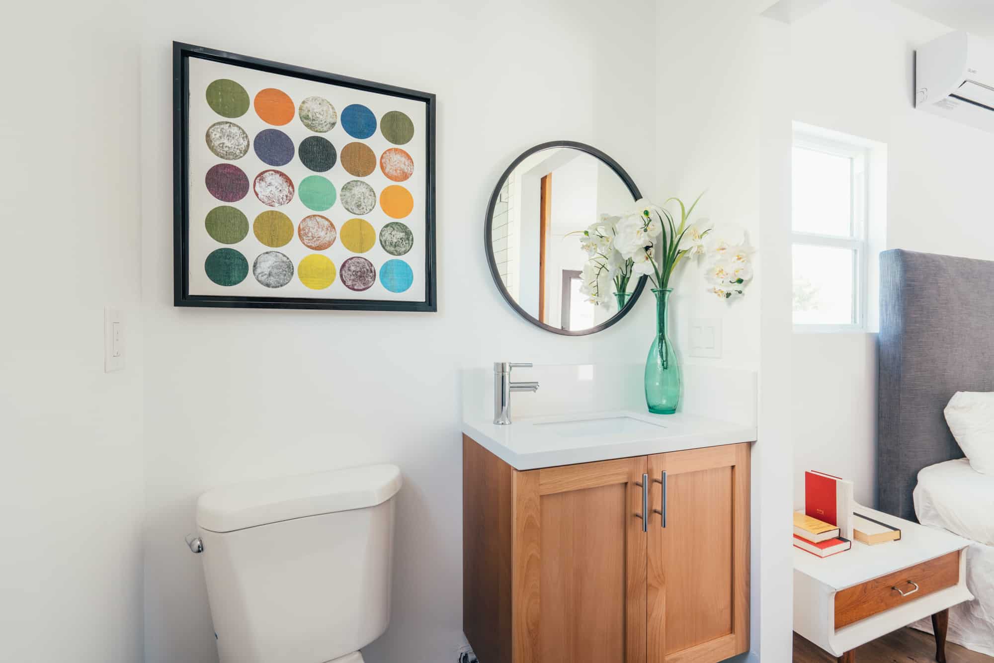 The shared hallway bathroom features a custom vanity with quartz counters and plenty of storage to hideaway personal affects. The second bedroom enjoys an en suite bath of it’s own!