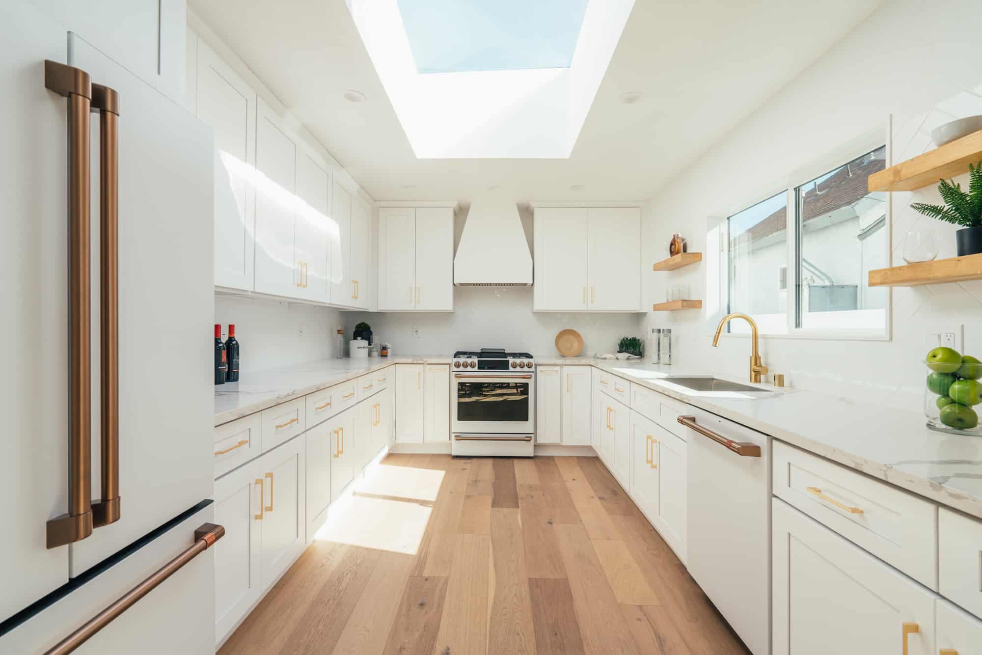 Enjoy a door to the yard aside the dining table, ensuring an easy walk to the outdoor grill on BBQ days. The kitchen is fit for the at home chef, with new Cafe appliances and tons of light from the overhead skylight for cookbook reading.