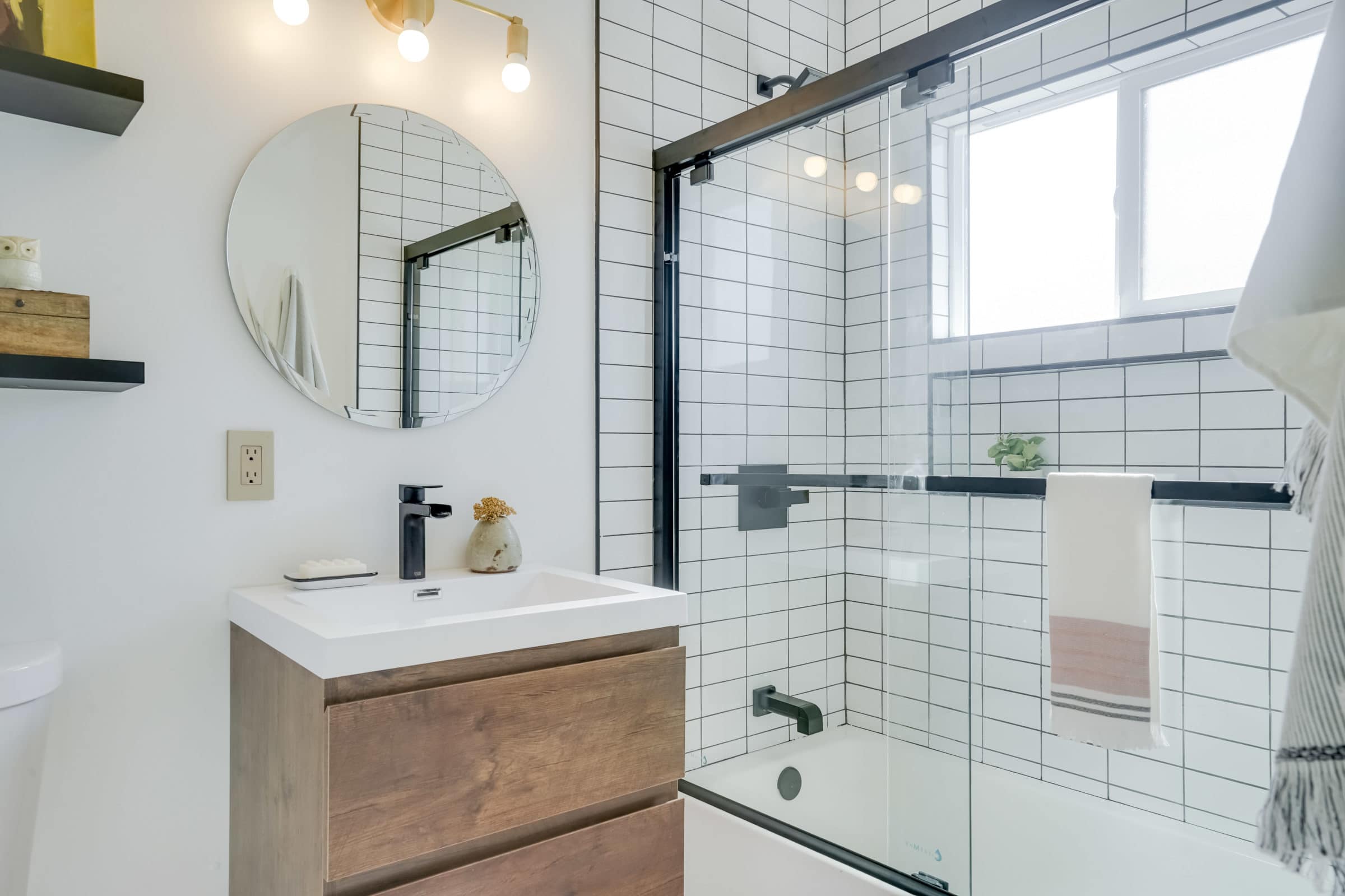 Both bedrooms offer ample space and generous closets. Renovated bathrooms include built-in Bluetooth speakers and Pinterest-worthy finishes and lighting – the perfect blend of minimalism and design.
