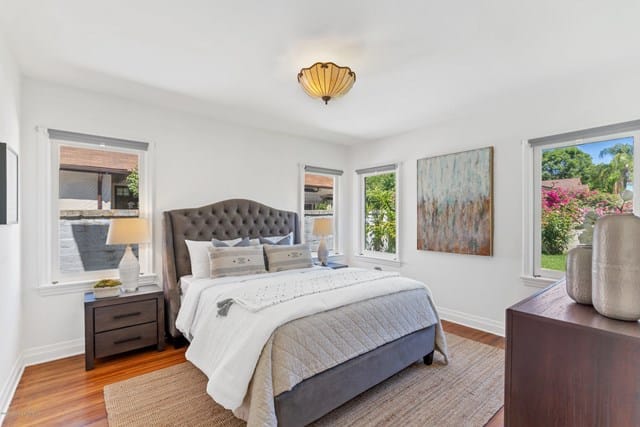 This 2 bed 1.5 bath Tudor Revival in the Orange Heights area of Pasadena features cathedral beamed ceilings, leaded glass windows, hardwood floors, a fireplace and a large private backyard with for all the best living.