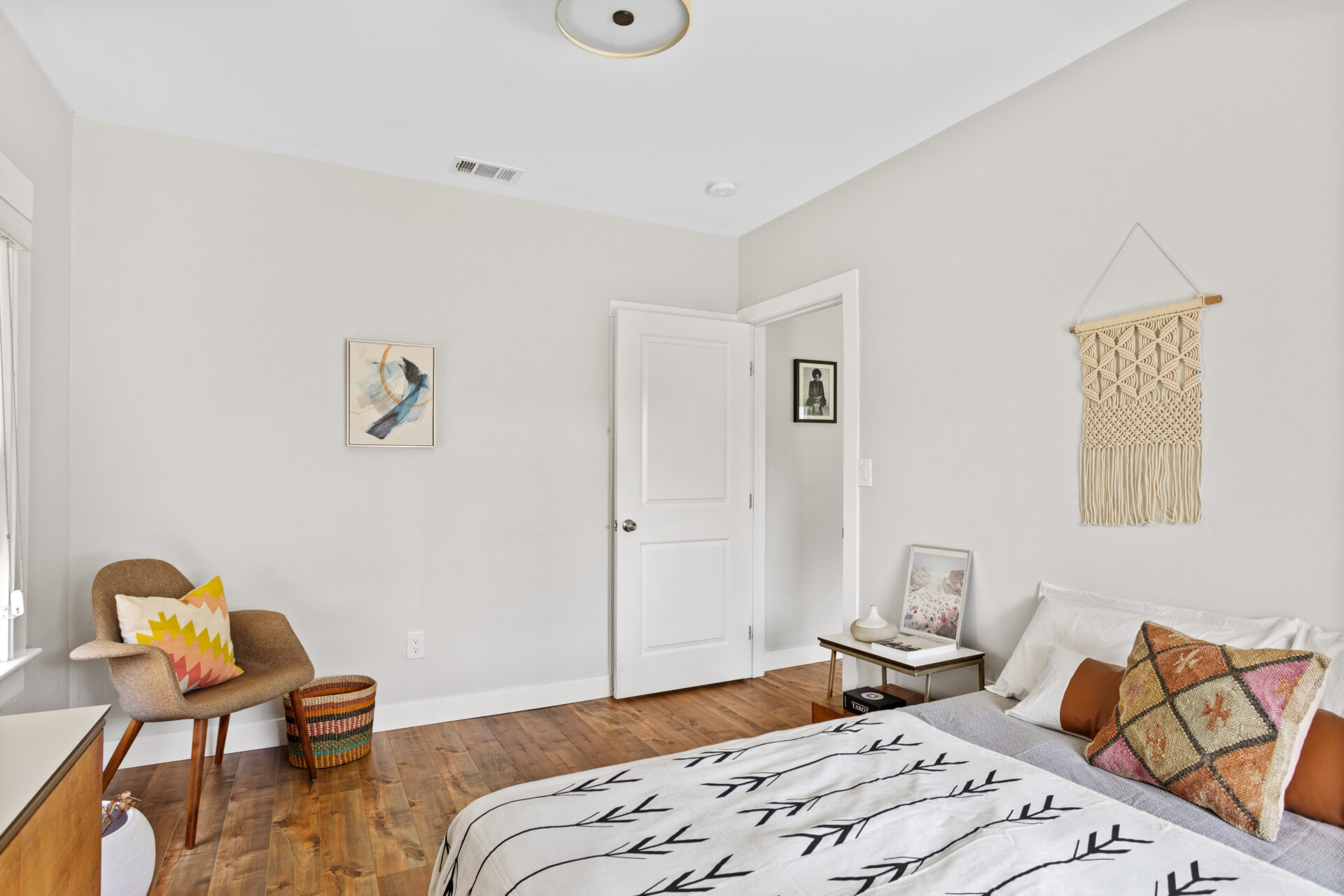Bedroom at front of home features beautiful light and flexible possibilities, to the rear of the first floor, 2 large guest bedrooms boast ample overflow space and modern finish.