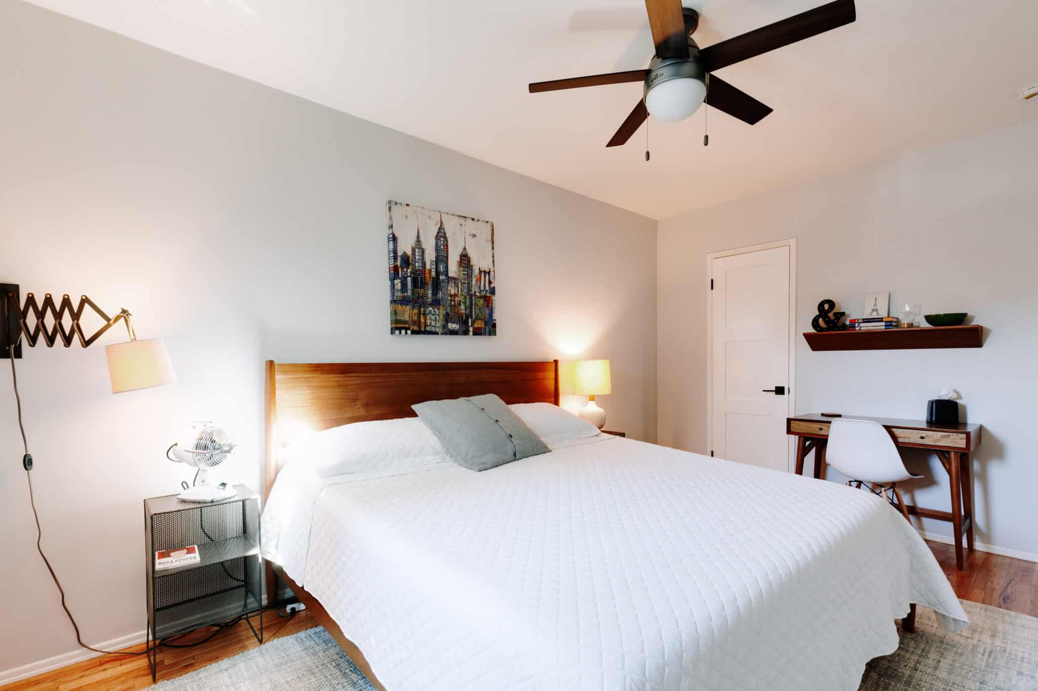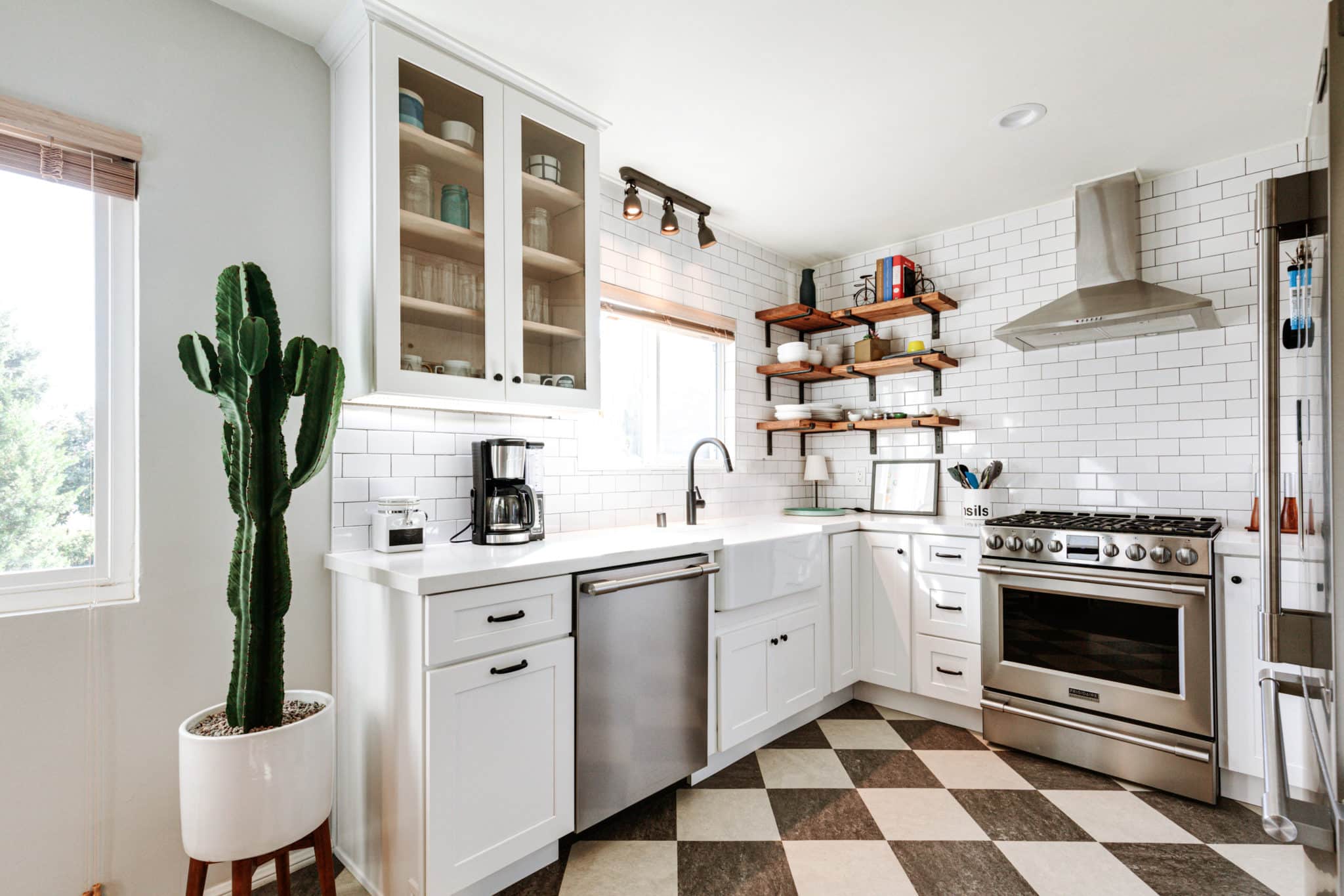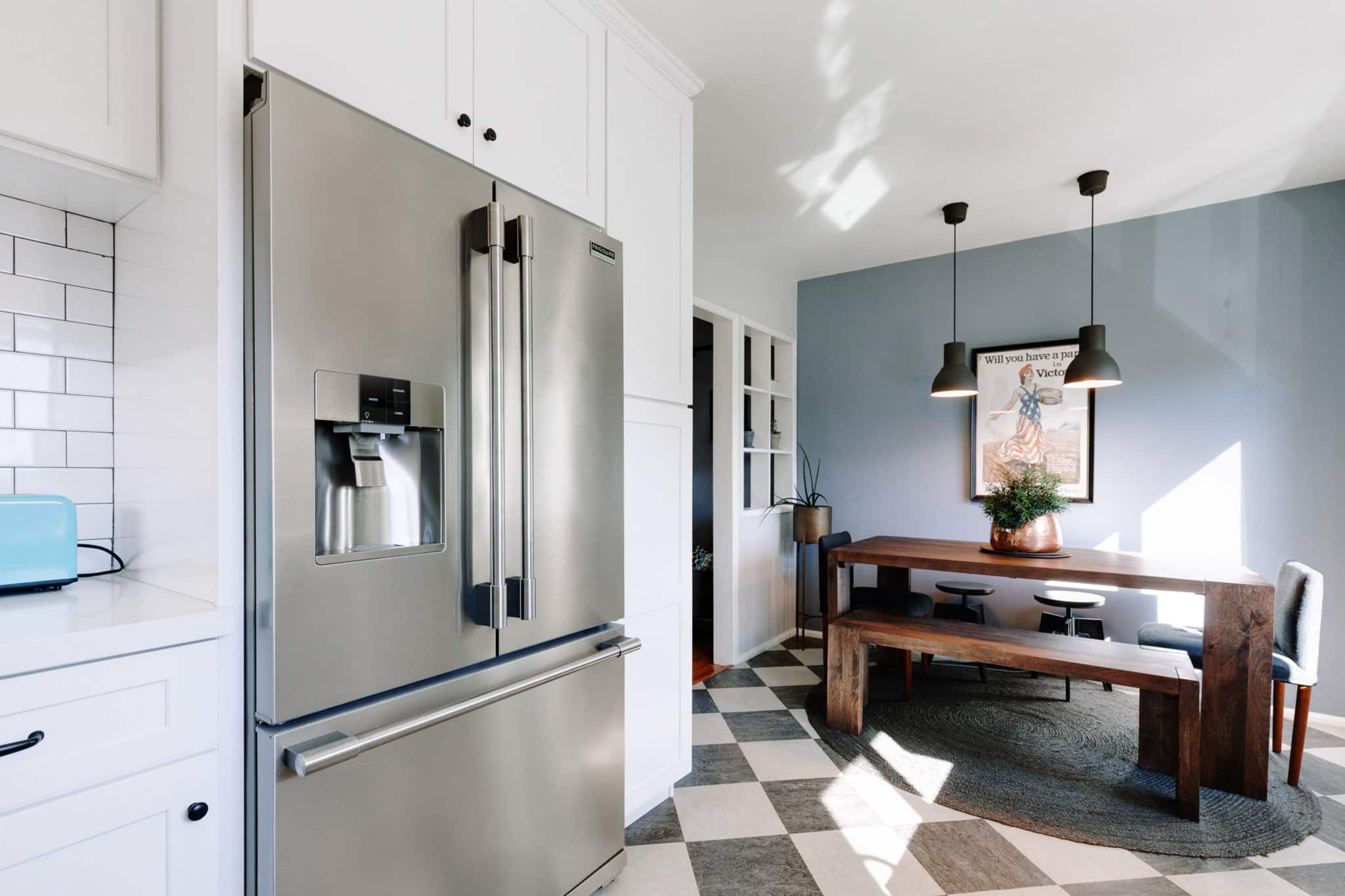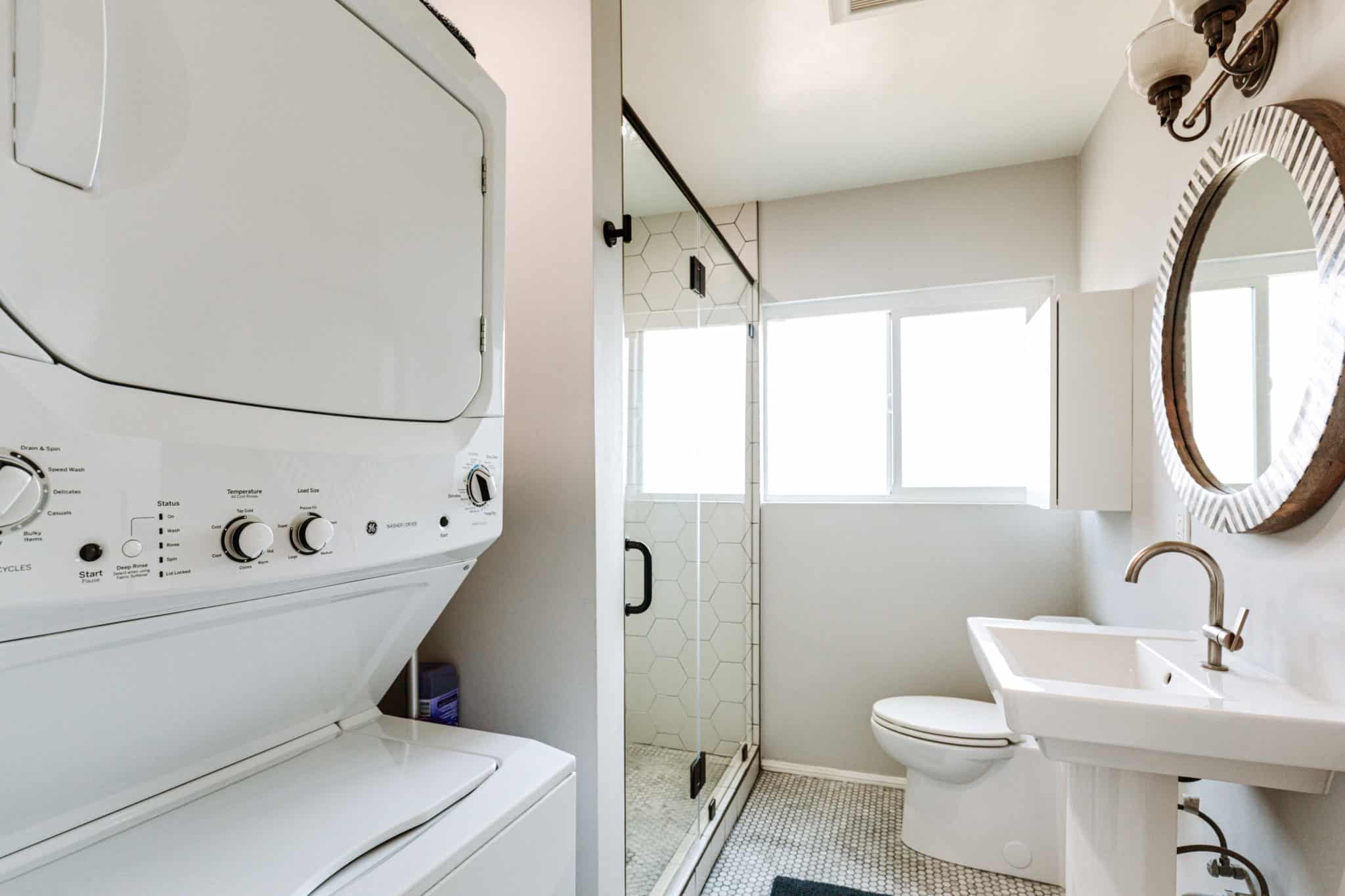 Both bedrooms are large & have ample wardrobe closet space. The updated full bathroom features a new sink, light fixtures, faucet, & beautiful tiles throughout. A full stackable washer dryer unit also sits conveniently and sleekly in the bathroom. In the kitchen, you will find stainless steel Frigidaire appliances with plenty of counter space and a retro-feel checkered floor.