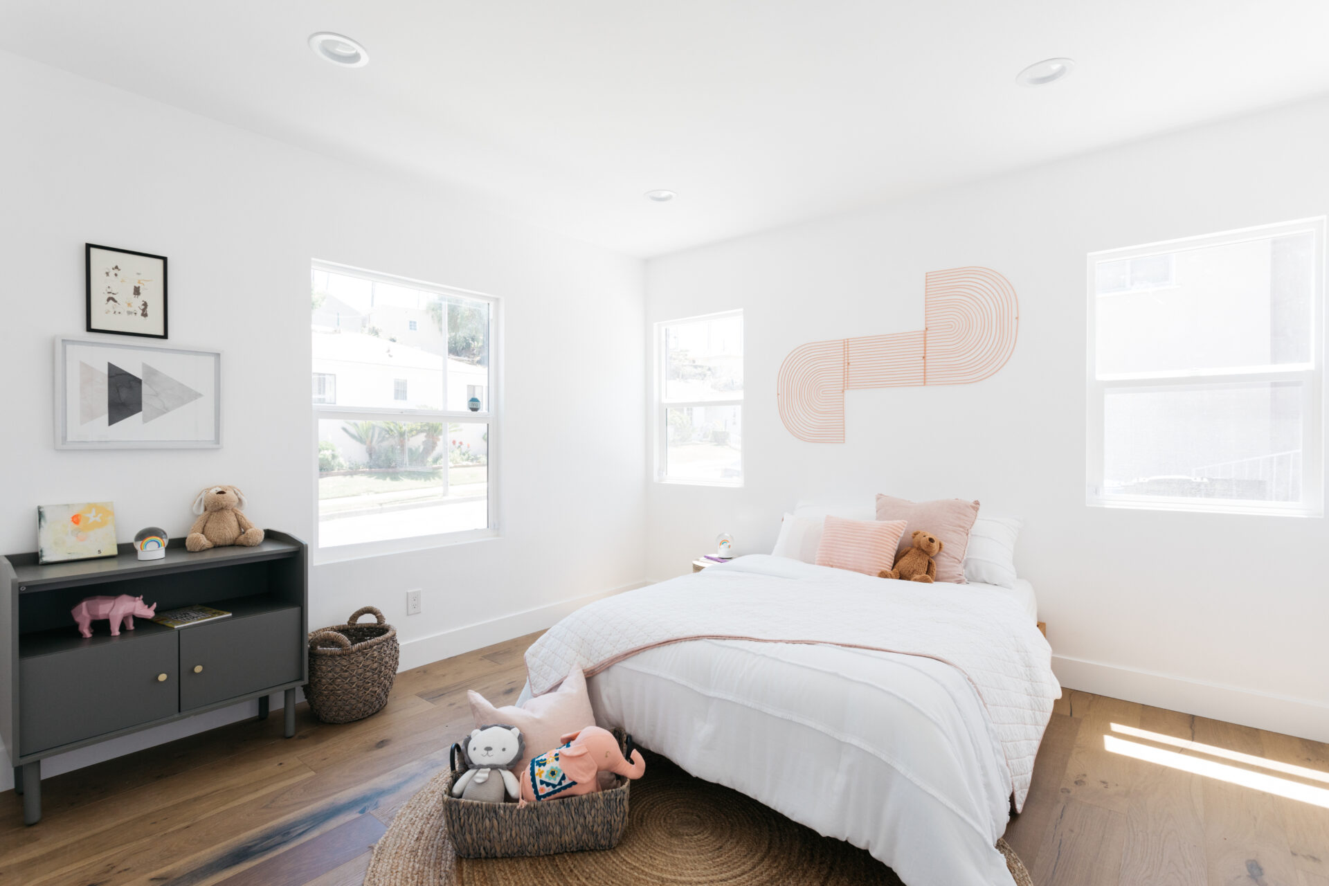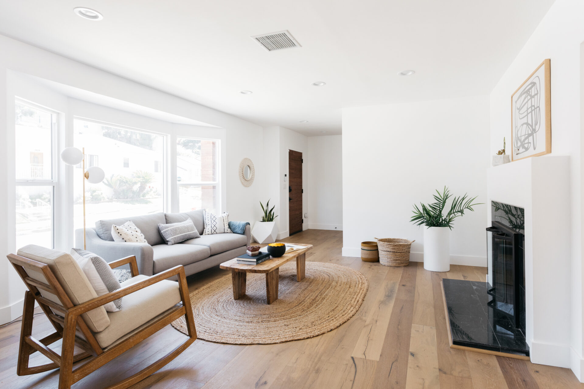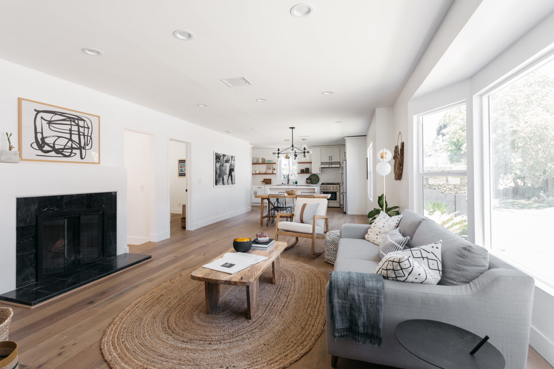 Pristine coastal modern ranch in coveted View Park! Enjoy sundrenched, spacious open concept living featuring large windows, stone fireplace, white-washed oak floors and recessed lighting.