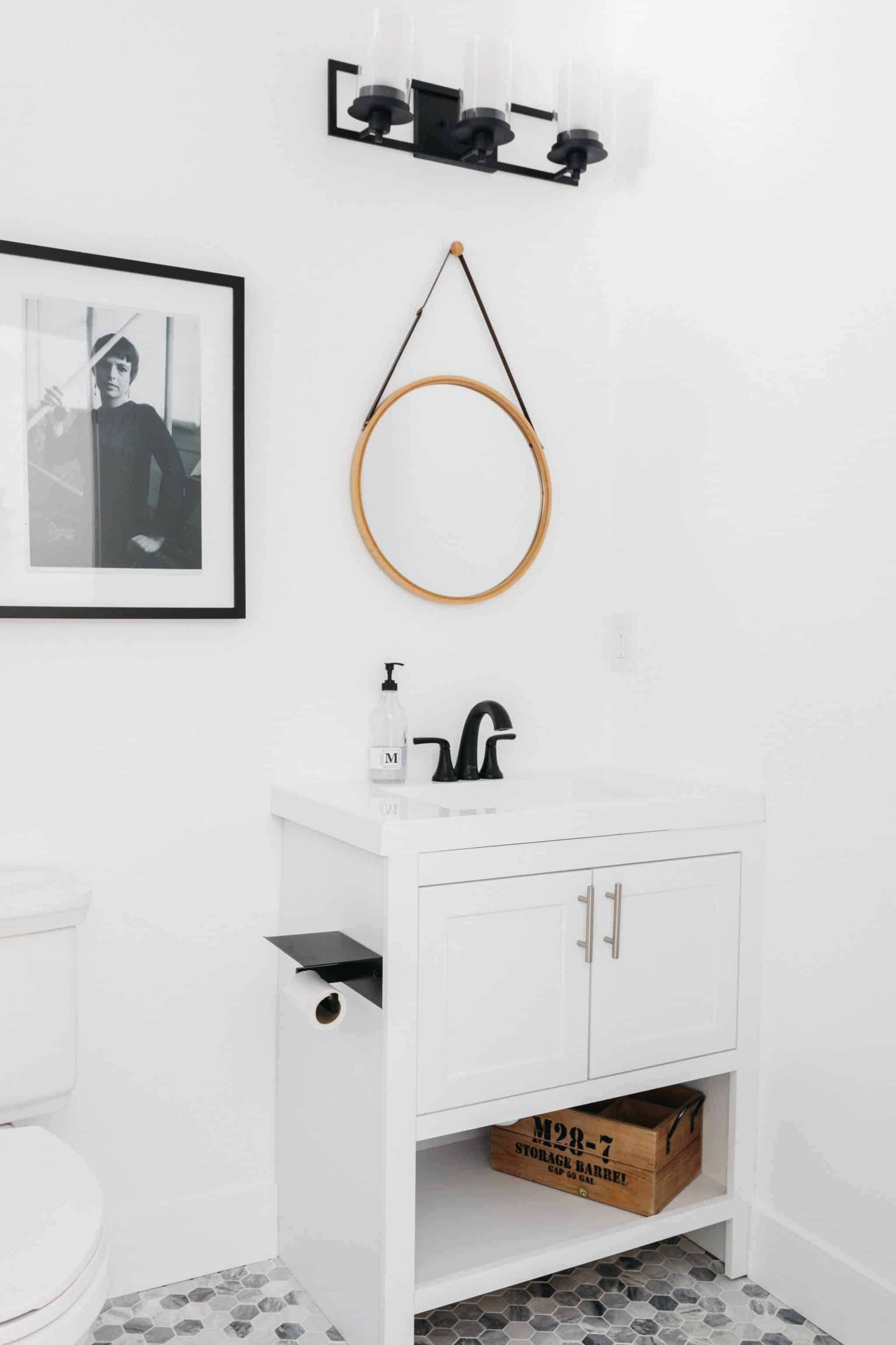 The private principal suite at the rear features glamorous oversized ensuite bathroom with marble-top dual vanity, freestanding soaking tub, separate shower with rainfall shower head, beautifully accented with floor to ceiling chevron subway tiling, marble chevron floors and matte black finishes.