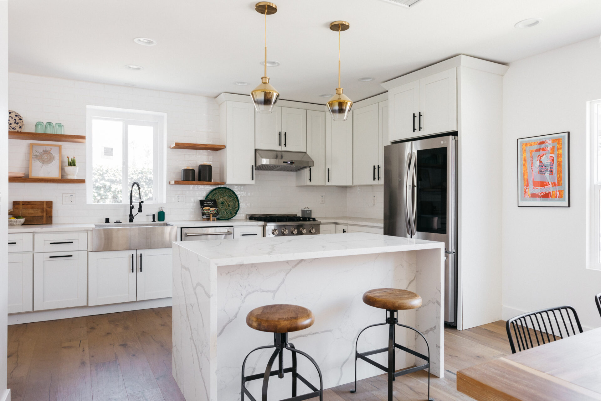 Imagine yourself cooking up a fabulous meal in the spacious kitchen with large island and bar seating, calacutta quartz countertops, oversized subway tile backsplash, matte black finishes, stainless steel appliances, and storage for days!