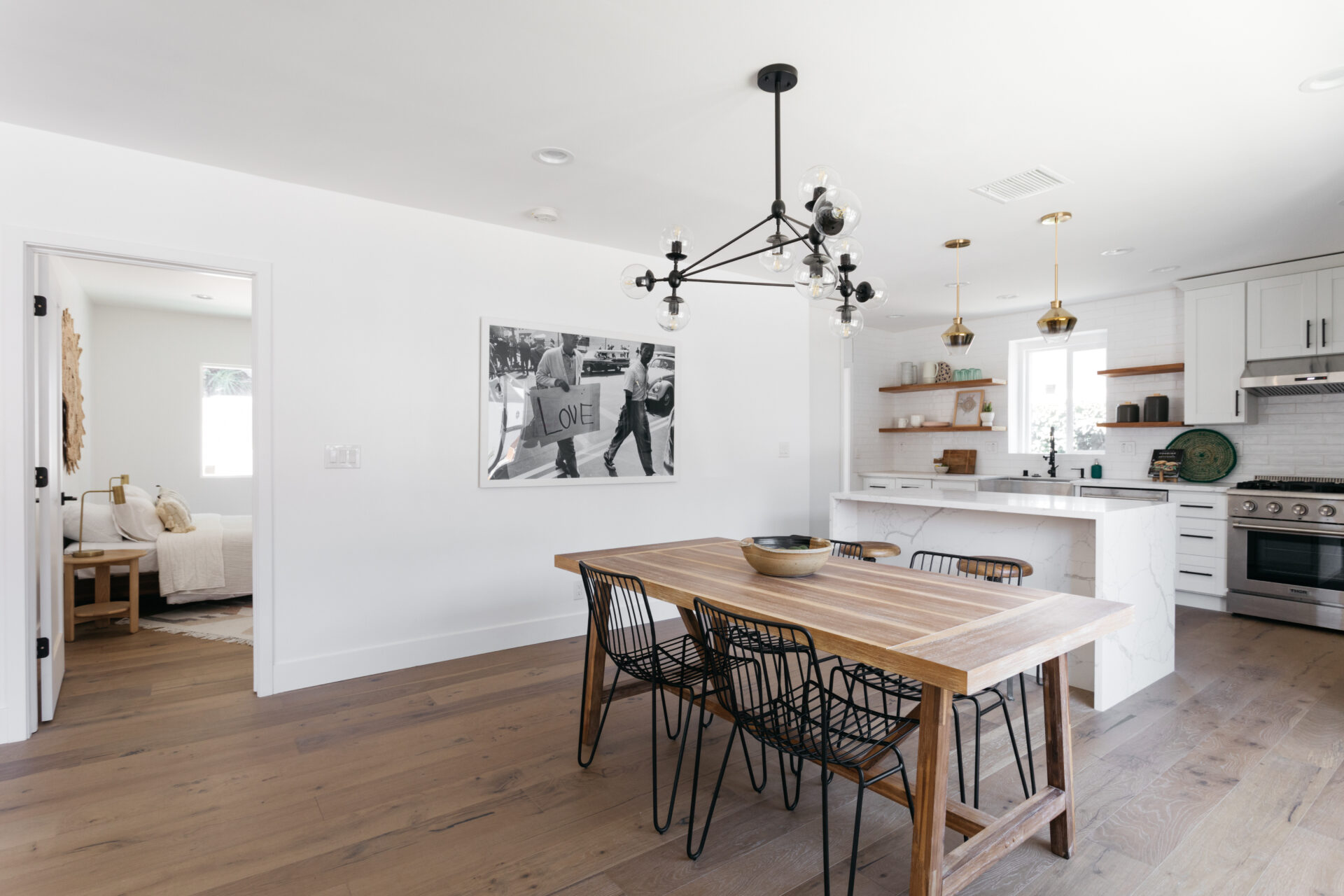 Open dining room features designer lighting and easy access to the den off the main living room, a perfect family room!