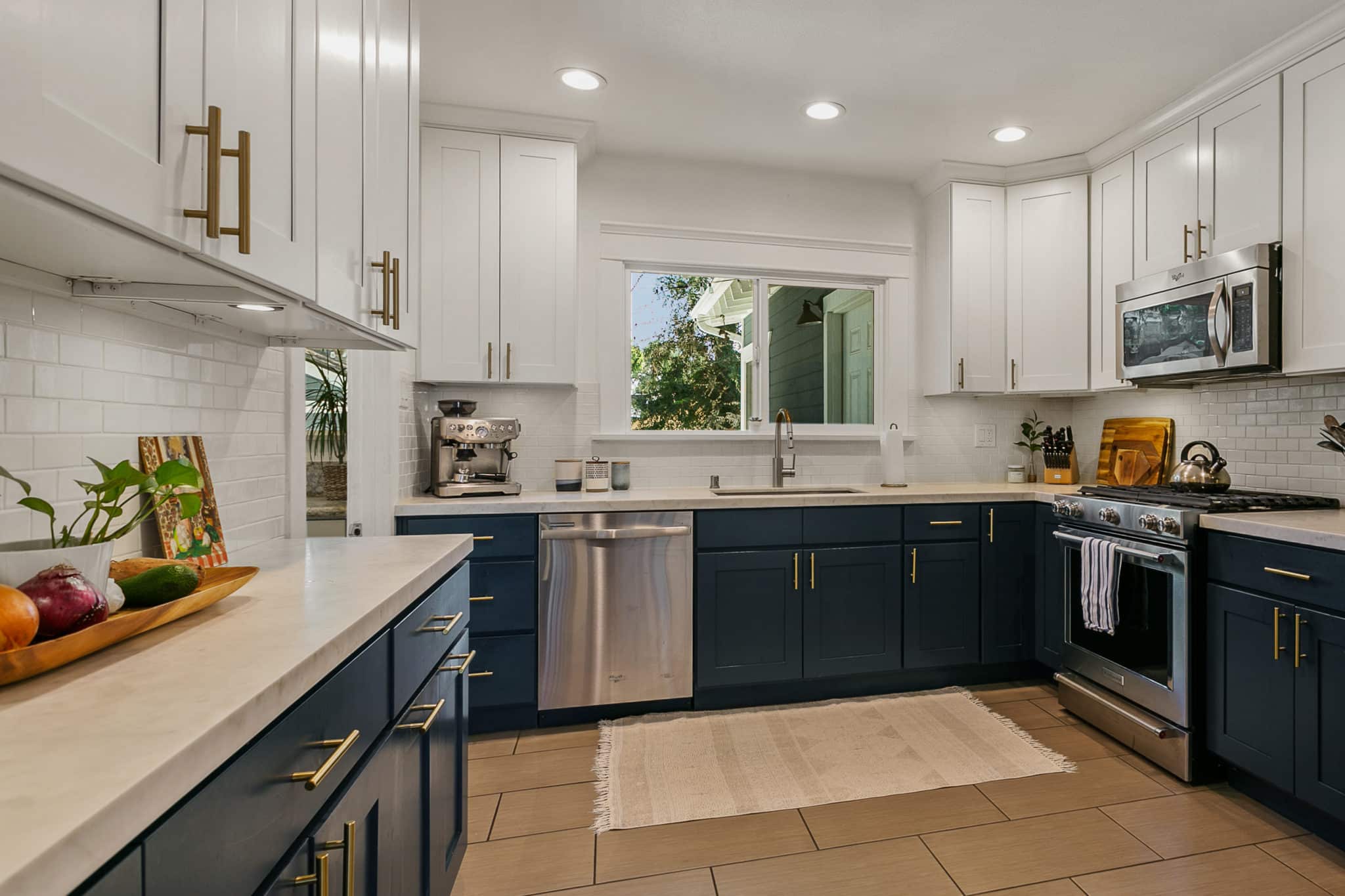 A light and bright kitchen overlooks an epic backyard which was beautifully landscaped and fenced.