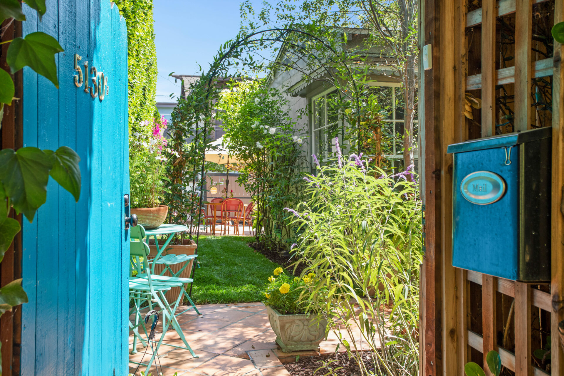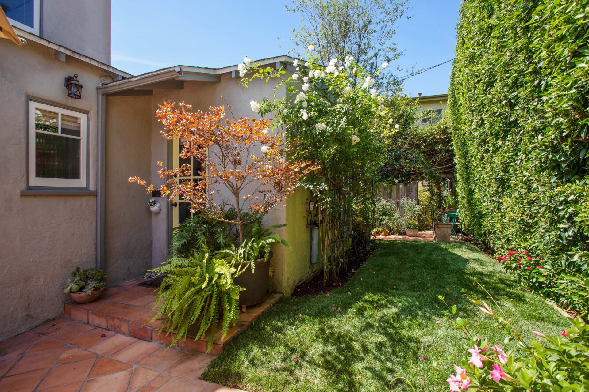 Catch the village vibes and enjoy privacy and peace as you step through your entry gate to your own lush garden and terrace. Step into Hollywood glam living, with high ceilings, character windows, custom window treatments highlighting the architectural authenticity of the home.