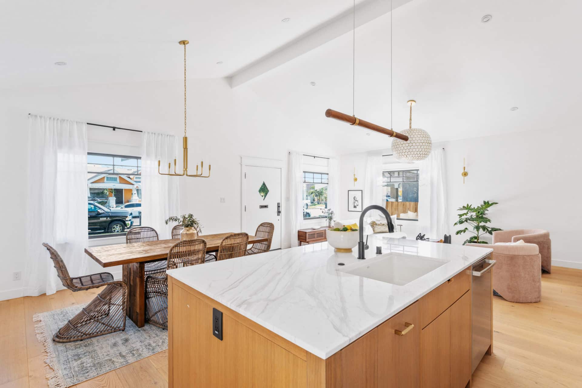 Classic charm meets modern design in this striking reimagined Craftsman bungalow. An impressive vaulted open concept great room, adorned by a stunning chandelier, is only the beginning of this design love fest.