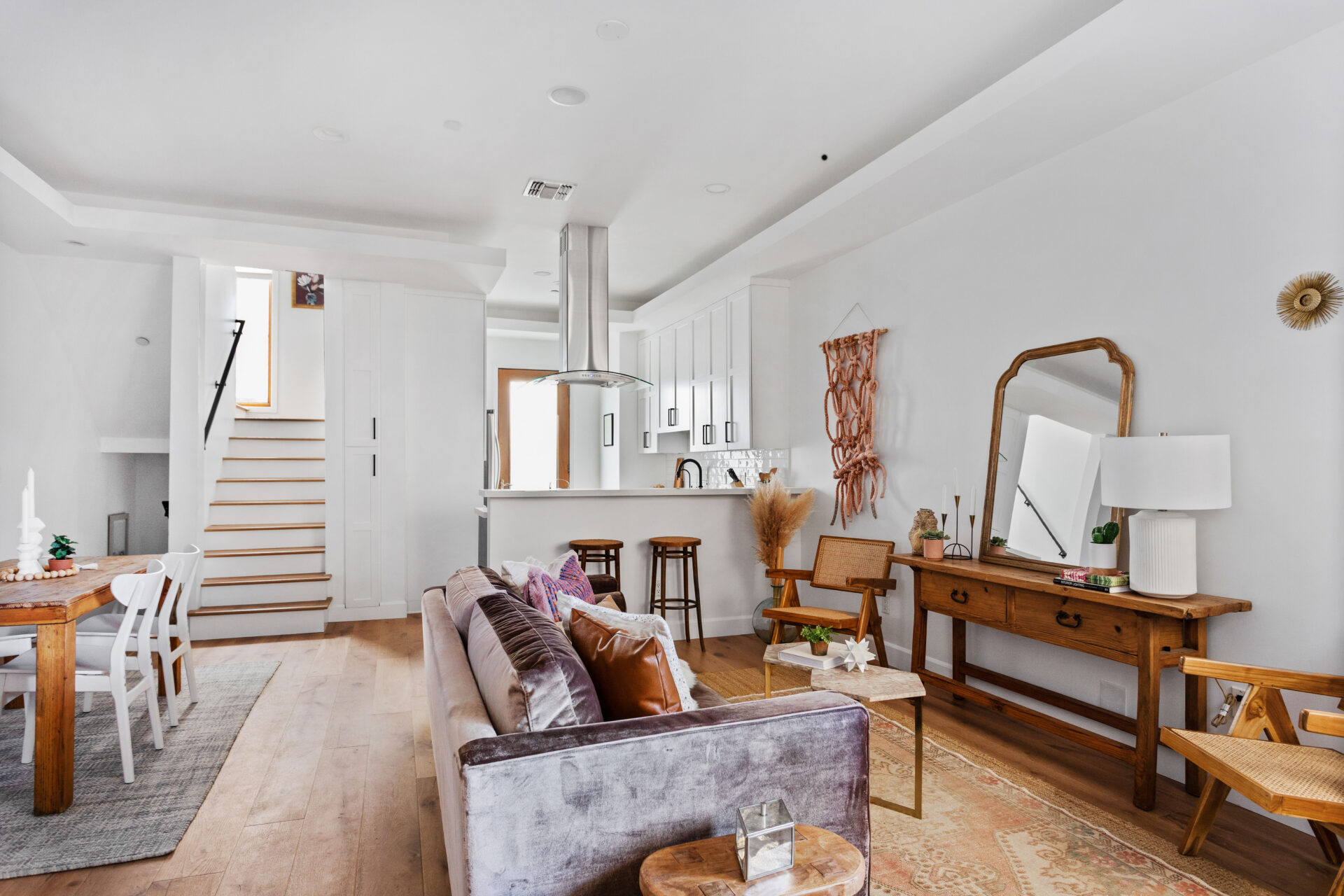 Breathtaking reimagined townhome in prime Burbank! Step inside this stunning unit, thoughtfully + meticulously renovated with an eye for design. Main level welcomes you into a gorgeous space where soaring ceilings with recessed lights complement an open layout where new light oak floors lead you from a spacious living room to dining & a stylish gourmet kitchen with all new custom cabinetry, soft-close drawers, beautiful subway tile backsplash & stainless steel appliances incl. new fridge + washer/dryer.