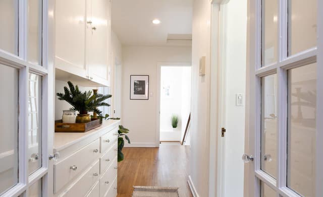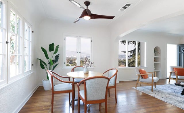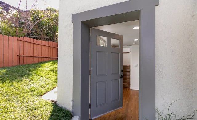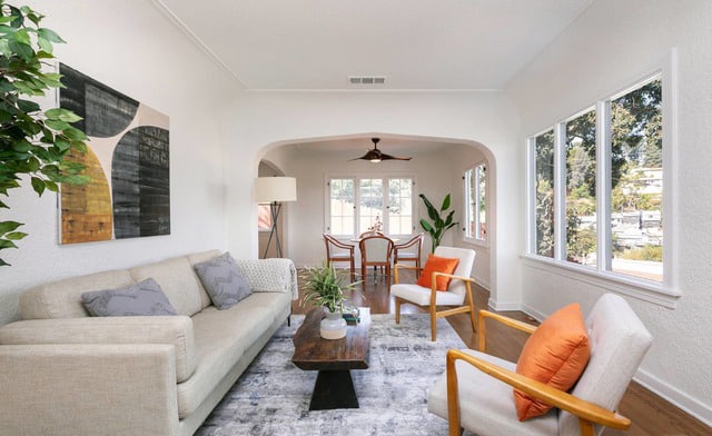 Inside, a bright cheery interior awaits, with warm wood floors, archways and…more gorgeous views. 🙂